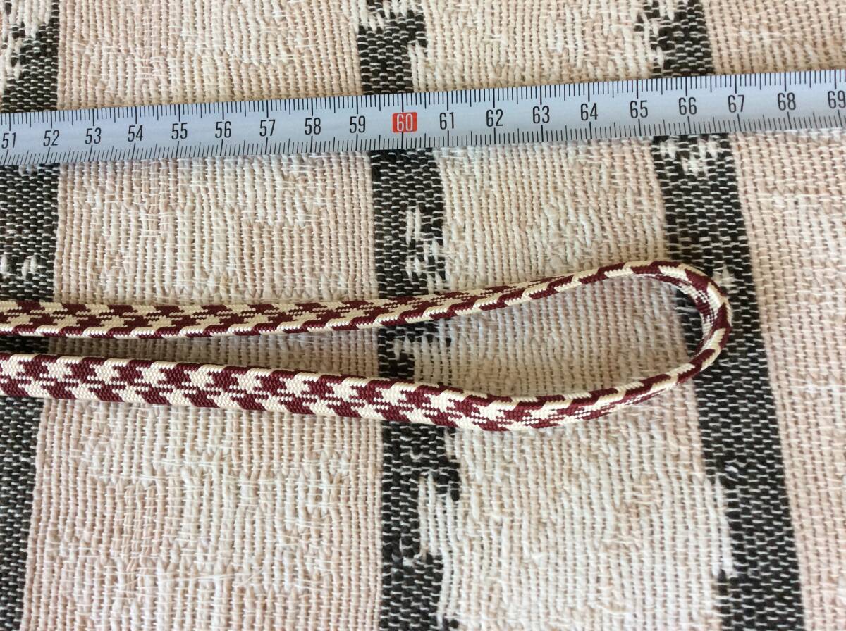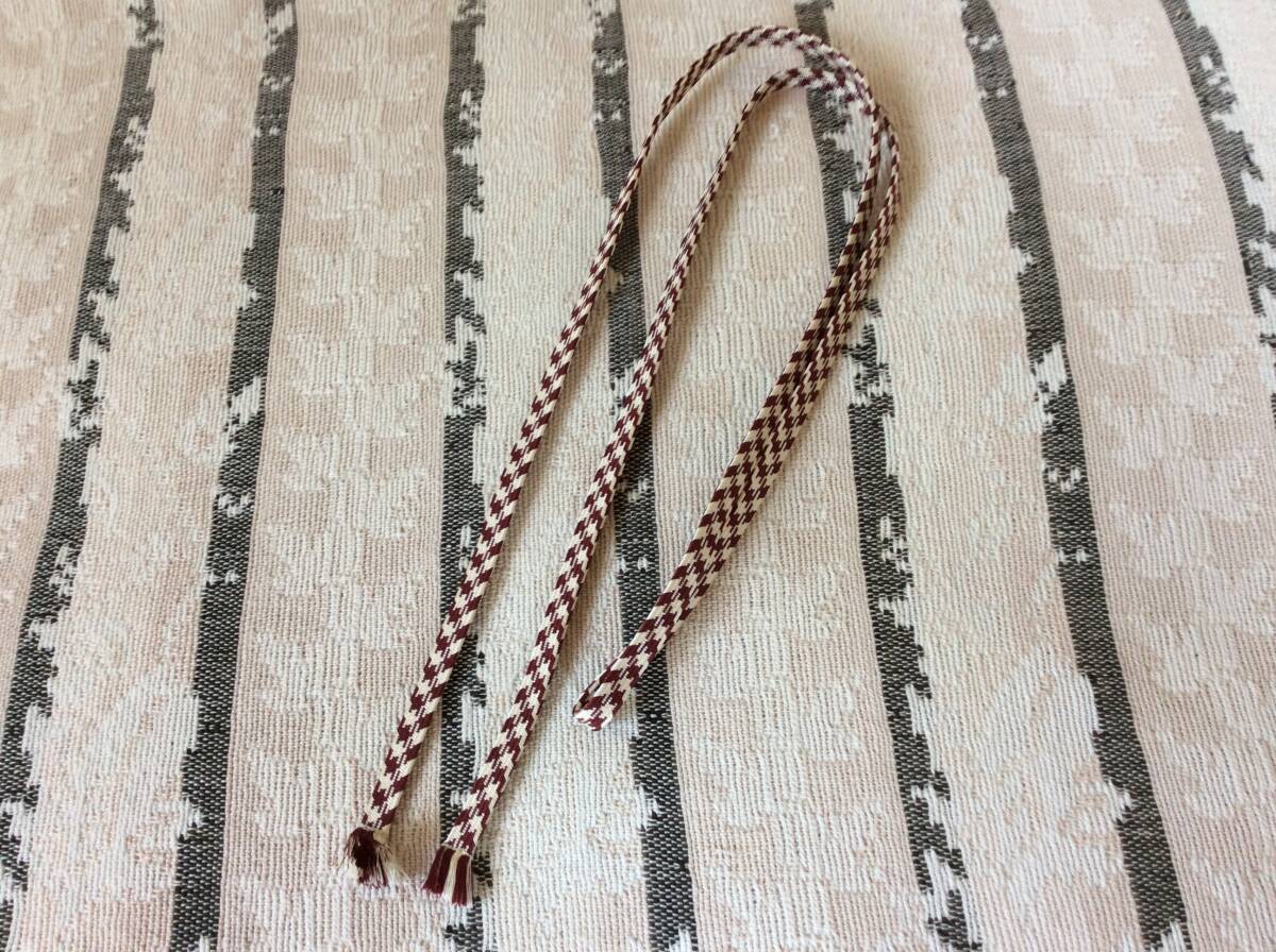 使用状況:あまり使っておらず、美品です。京都高島屋呉服コーナーで数年前購入した帯締めです。三分紐になります。帯留を通して使うのに便利です。
