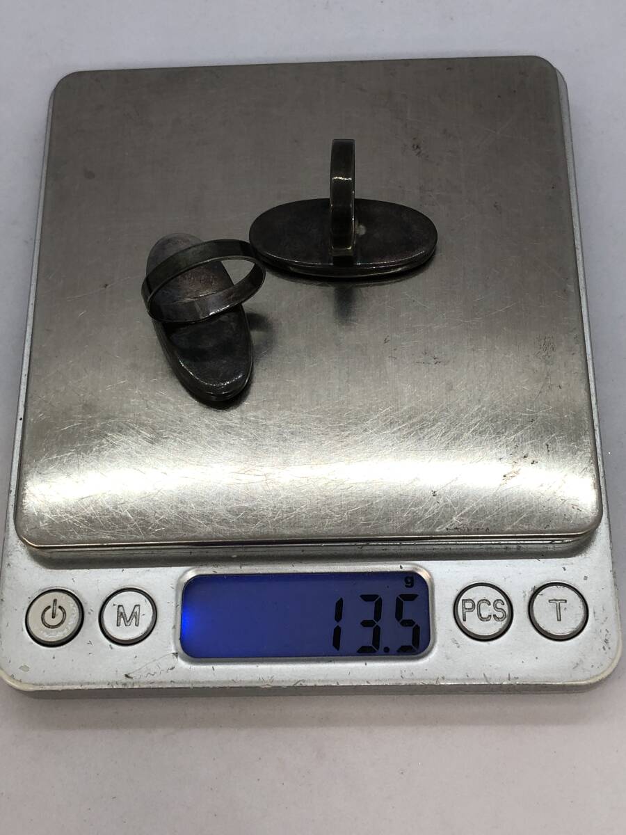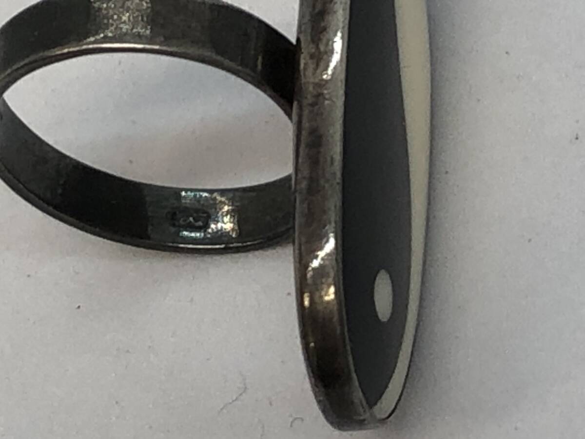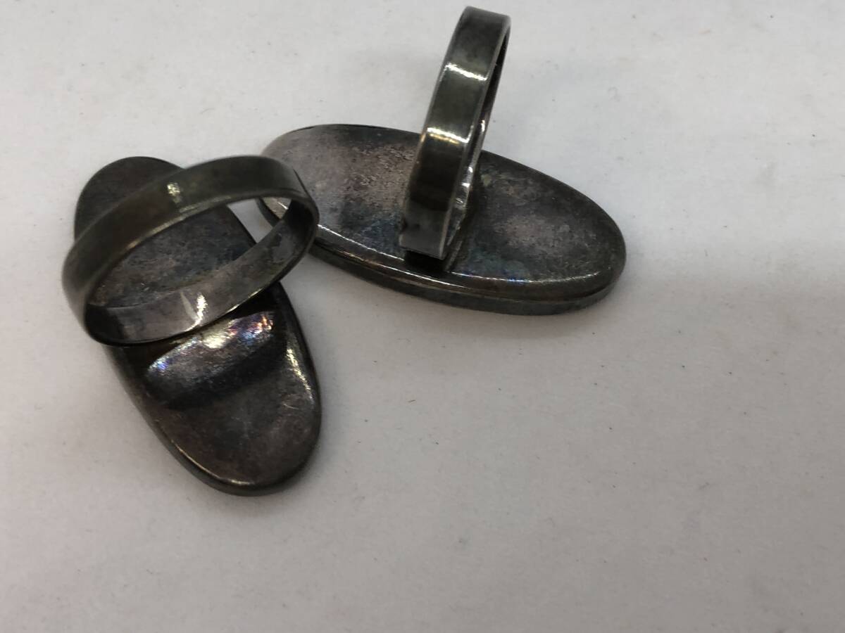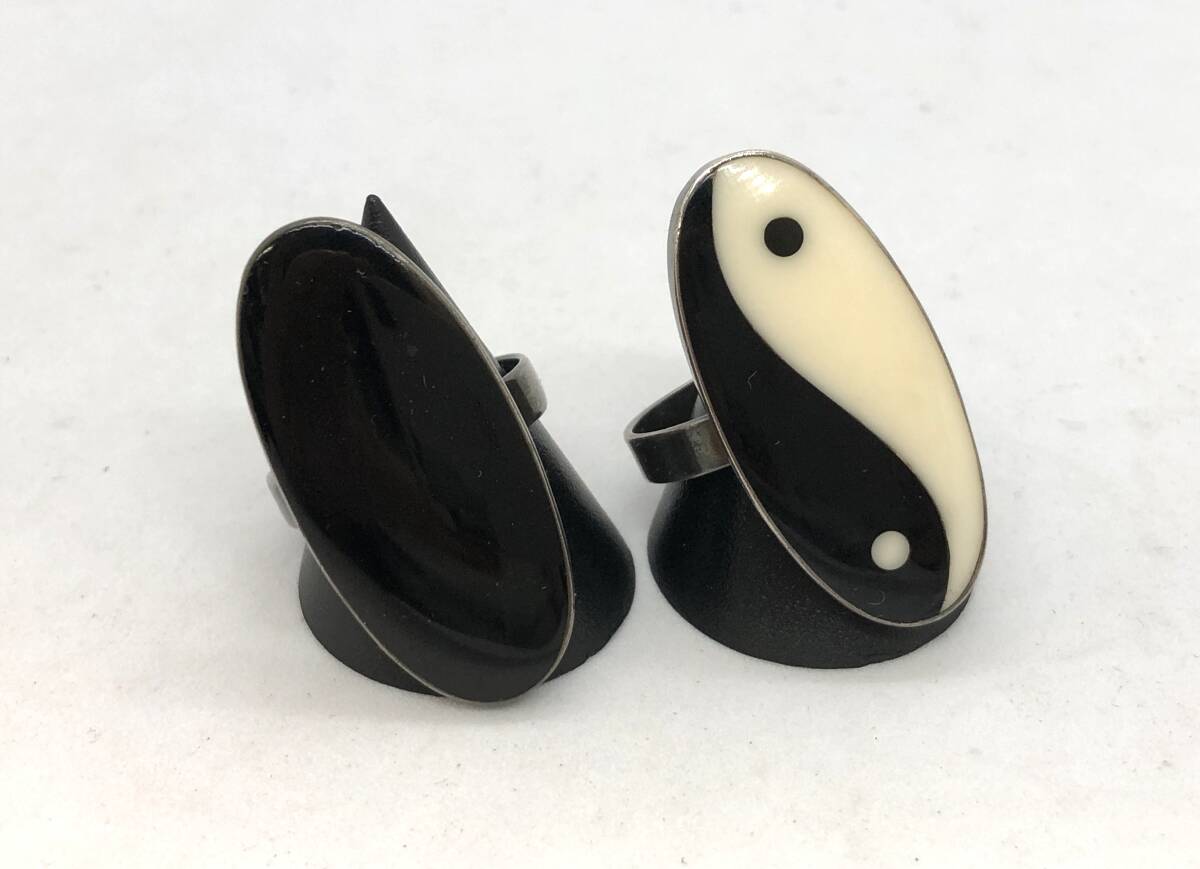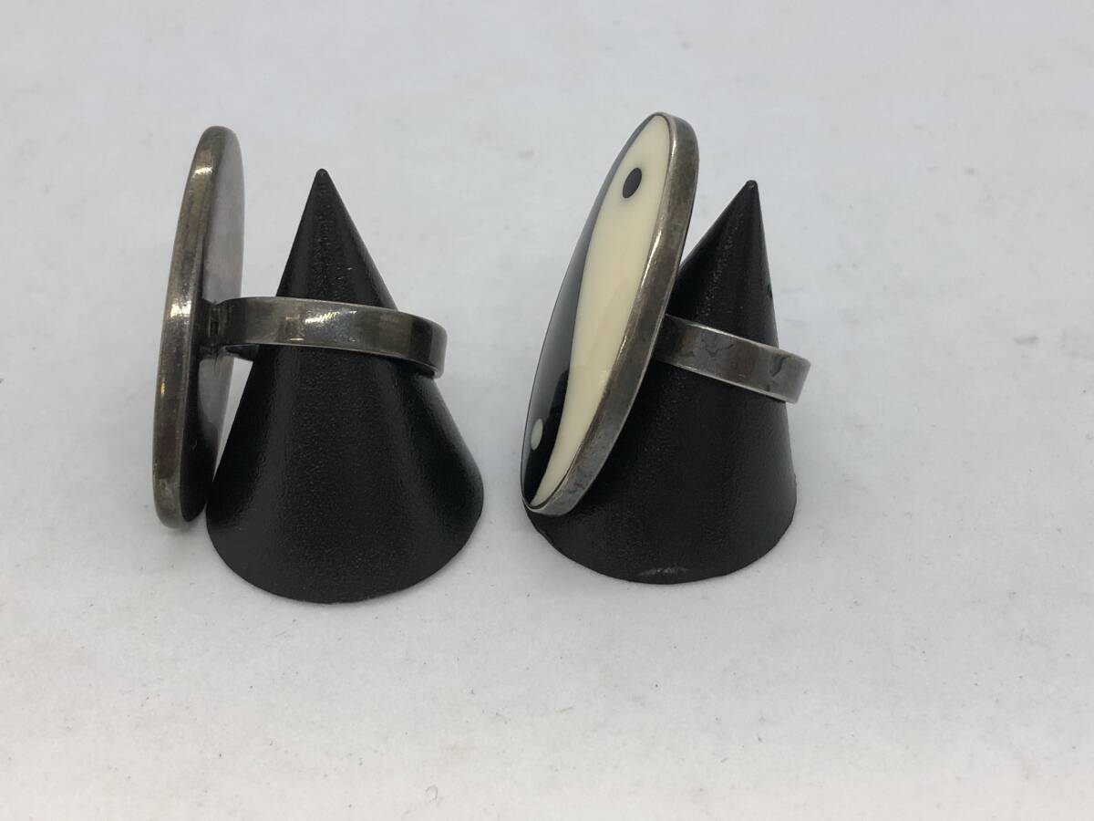 | オーバルリング 陰陽 風水 勾玉 黒 無地 SILVER 925 指輪 16号 プレート 2点おまとめセット 保管20 |