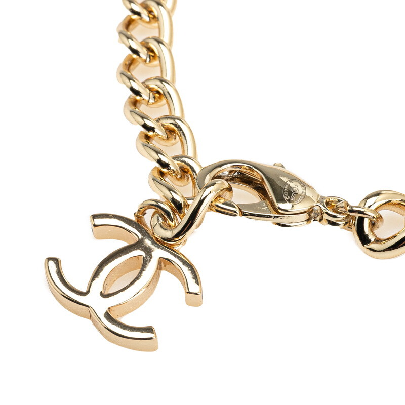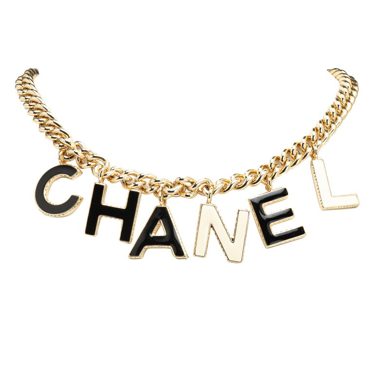 シャネル ロゴ チェーン ネックレス ゴールド ブラック ホワイト メッキ レディース CHANEL 【中古】