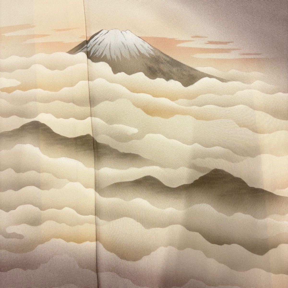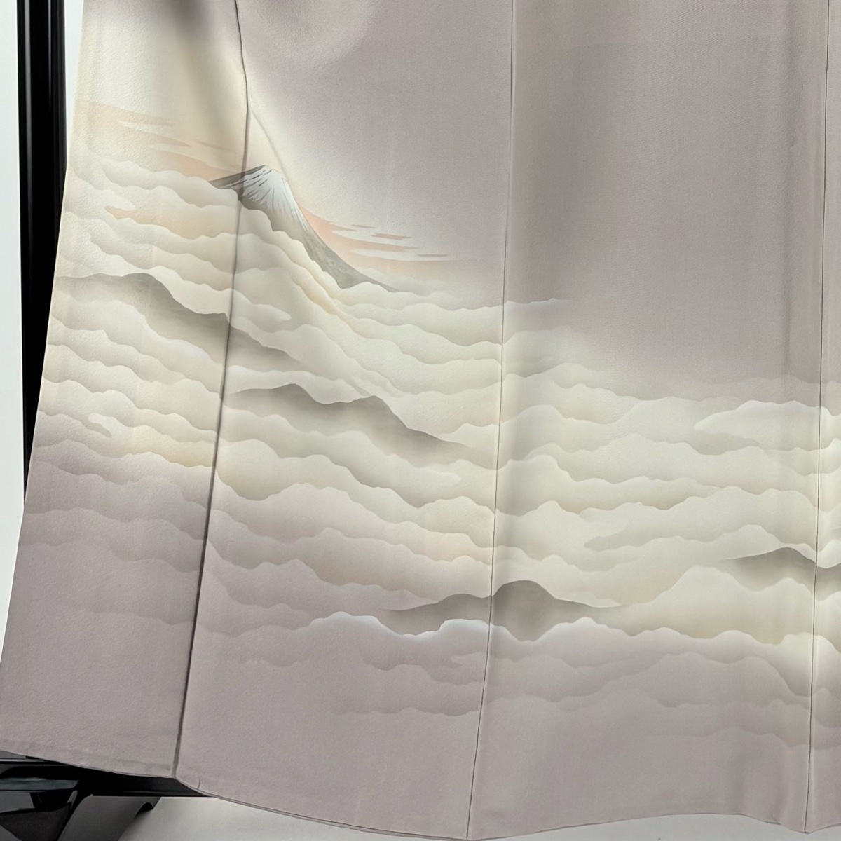 付下げ 名品 横山大観 富士山 雲海 ぼかし 灰紫 袷 身丈160 裄丈66 M 正絹 【中古】 |