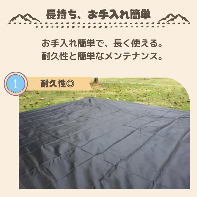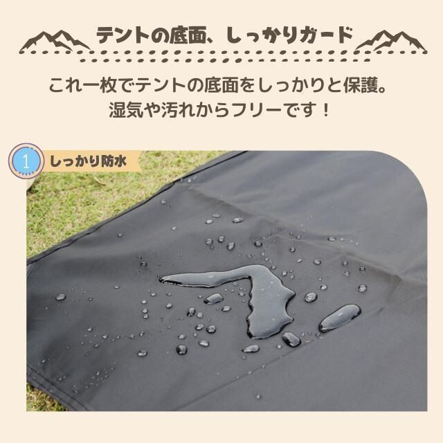 テントやタープの下に敷くだけで、室内をクリーン&ドライに保ちます