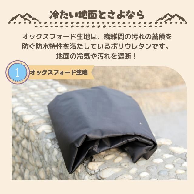 撥水加工のオックスフォード布が、冷たく湿った地面や汚れをしっかりガード