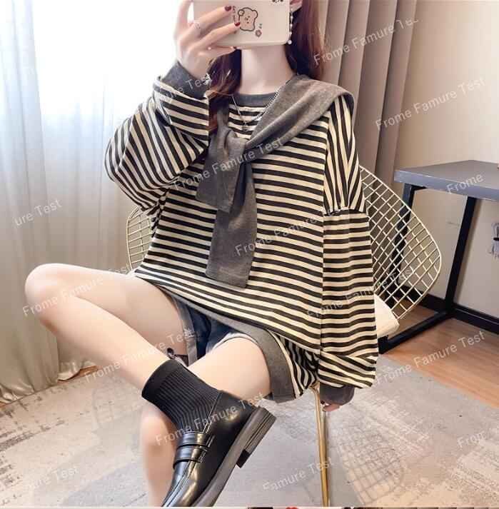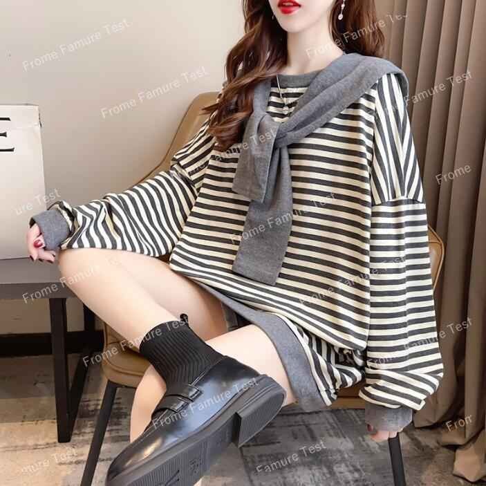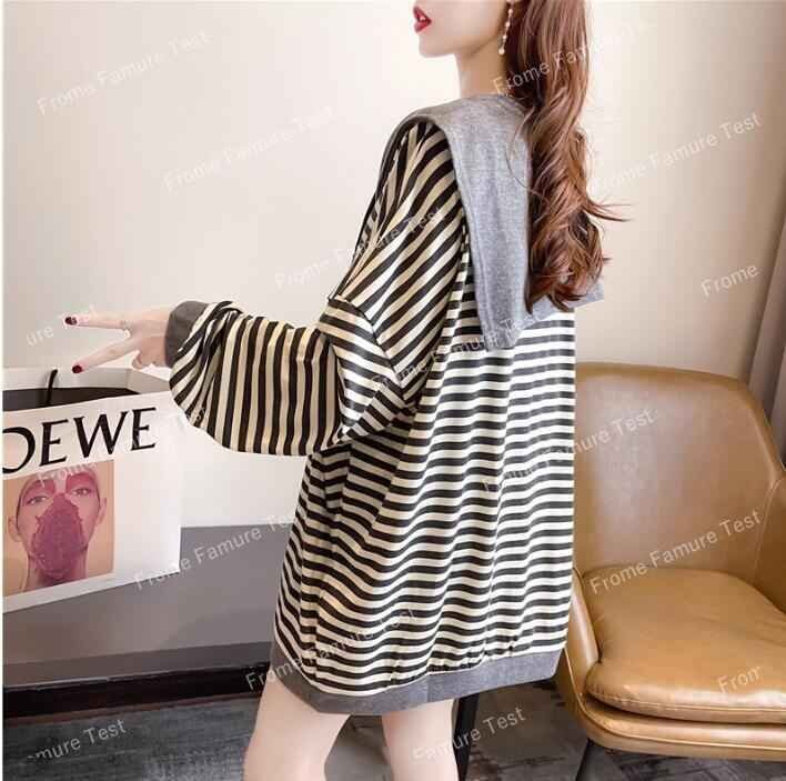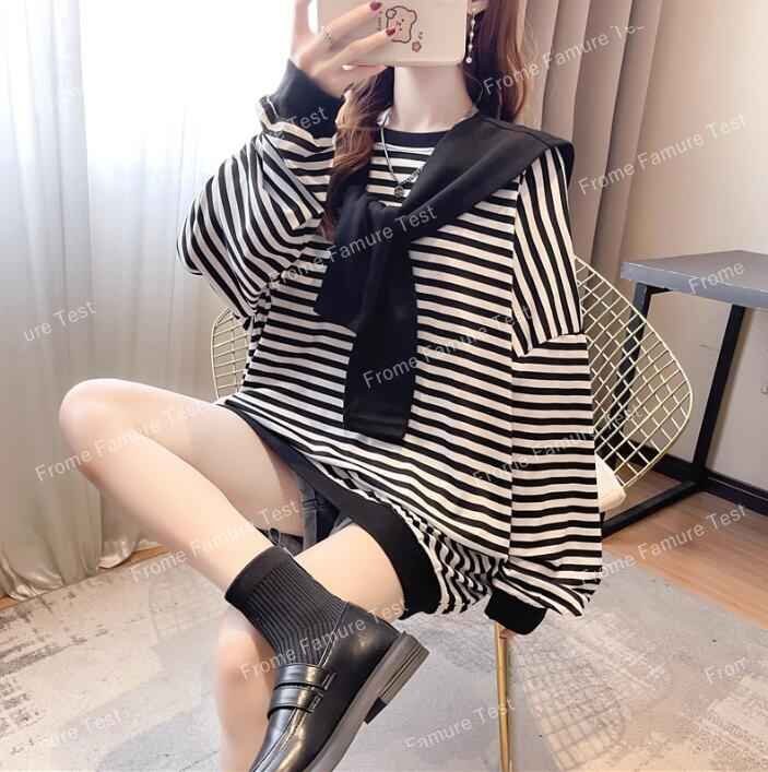 レディース カジュアルパーカー 韓国風 トップス ボーダー柄 L ブラック