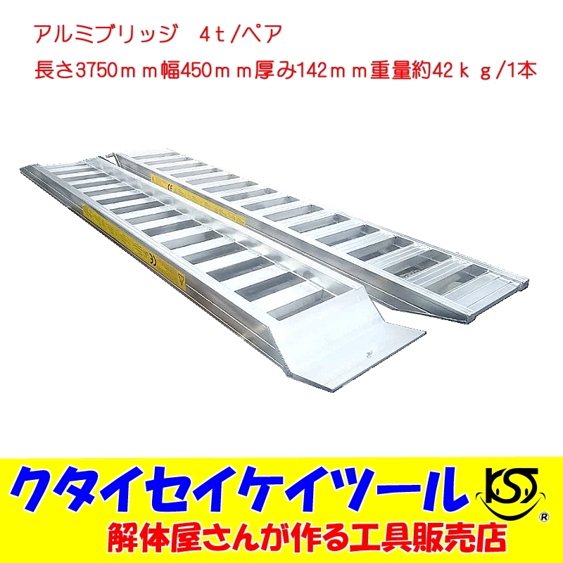 アルミブリッジ 4t/ペア 長さ3750mm 幅450mm 歩み板 ベロ式 積込 ラダー ユンボ 重機 トラクター 車 積込 油圧ショベル