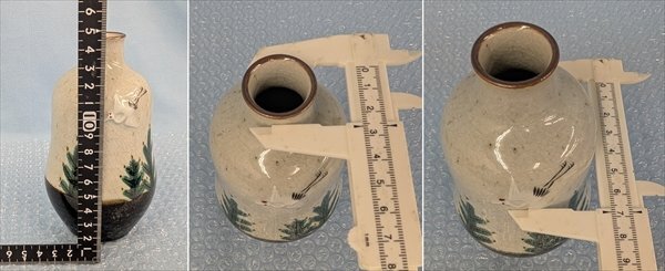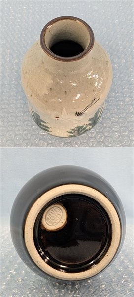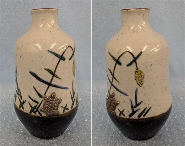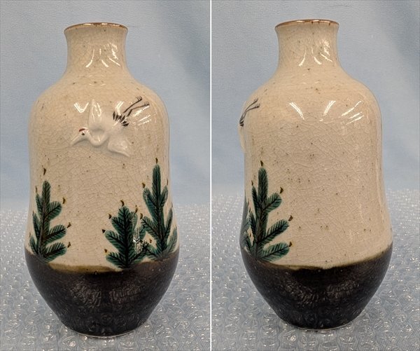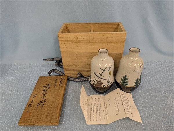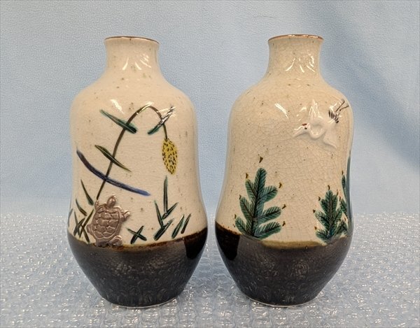 九谷焼 村中翠芳 徳利壱対 鶴亀彫文 共箱 共布/長期保管品・箱汚れあり