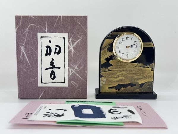 sa☆/ 未使用品 会津塗 漆芸時計 初音 電池式 置時計 函付き  /DY-4689 LS