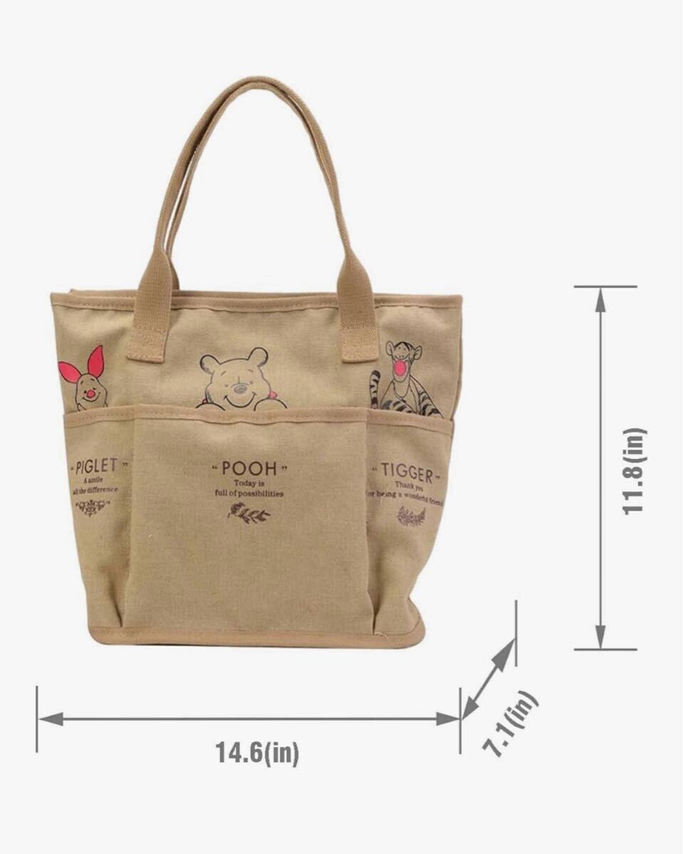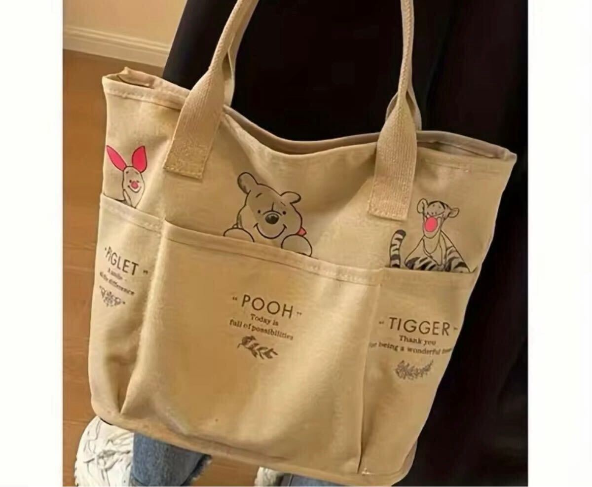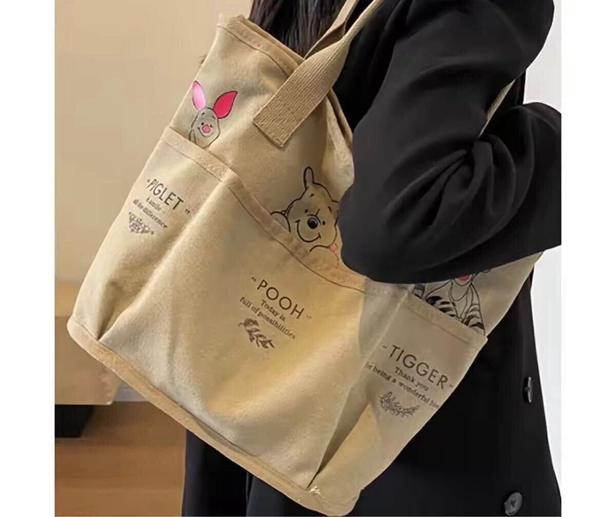 【新品未使用】くまのプーさん トートバッグ キャンバス フロントポケット付き 大容量 プー ティガー ピグレット 海外製品