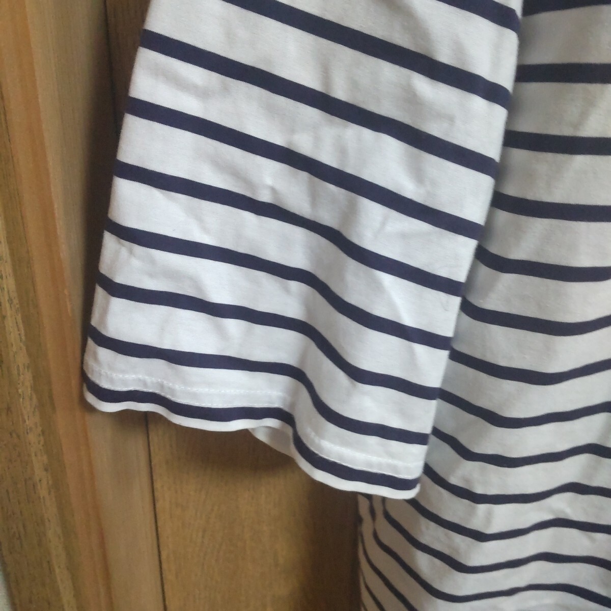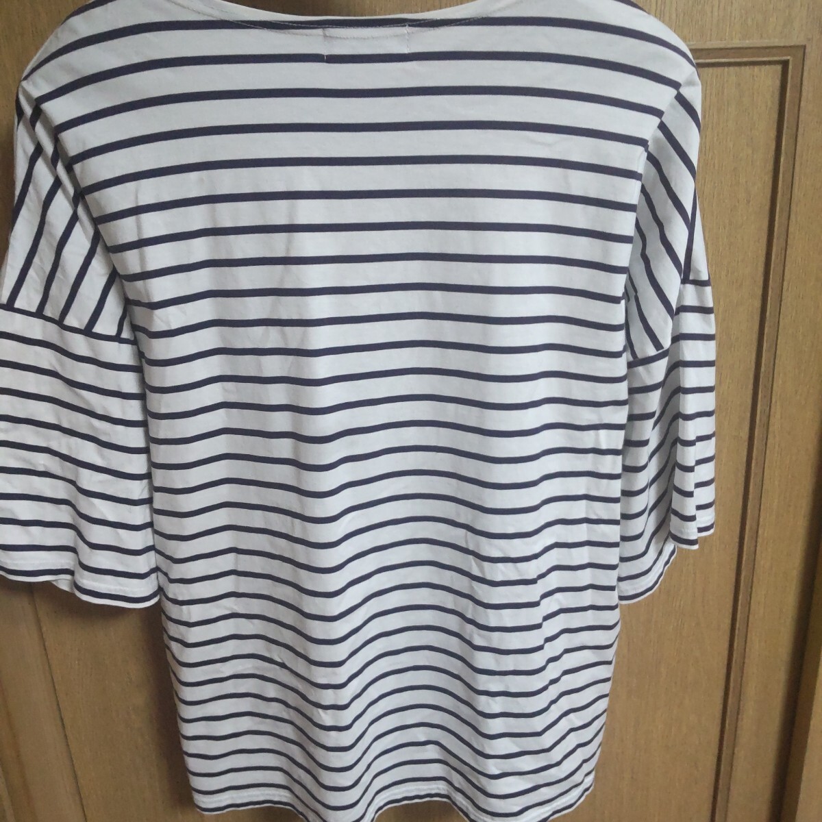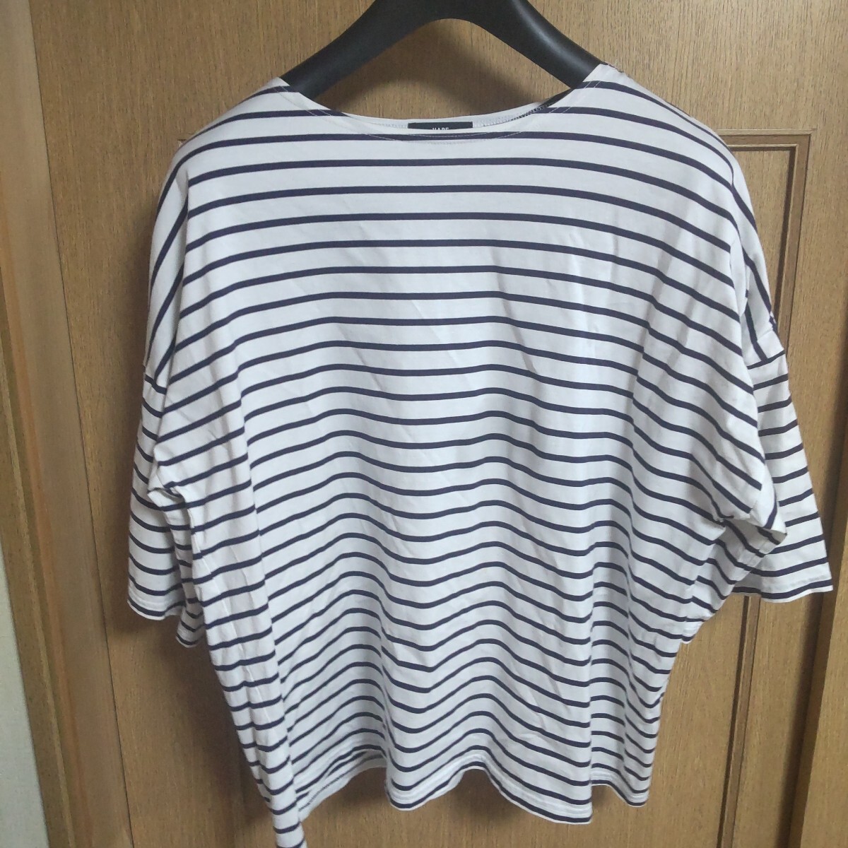 ホワイト×ネイビーと使いやすく合わせやすいです。トレンドの短丈のシルエットで身幅はゆったりでとても格好良く決まります。