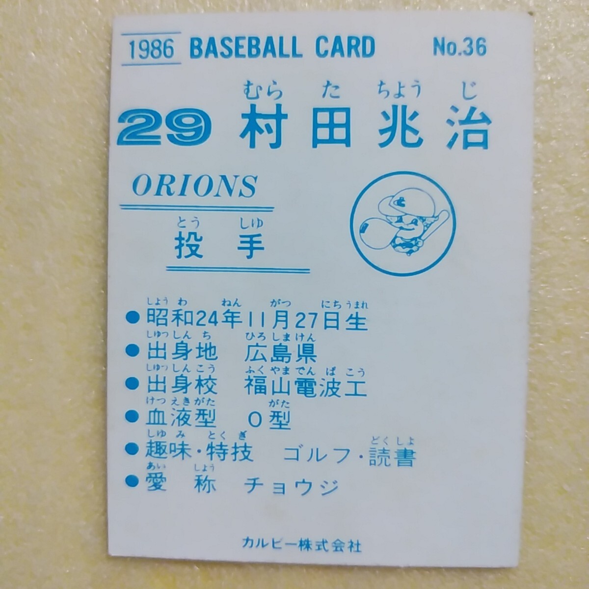 1986カルビー野球カード№36村田兆治(ロッテ)