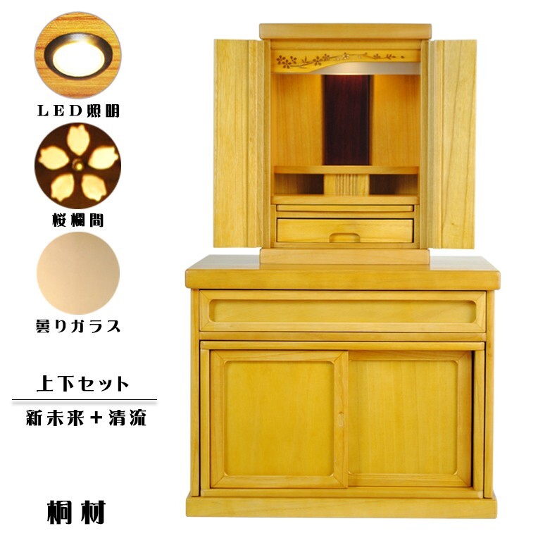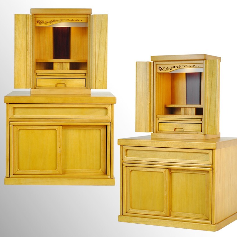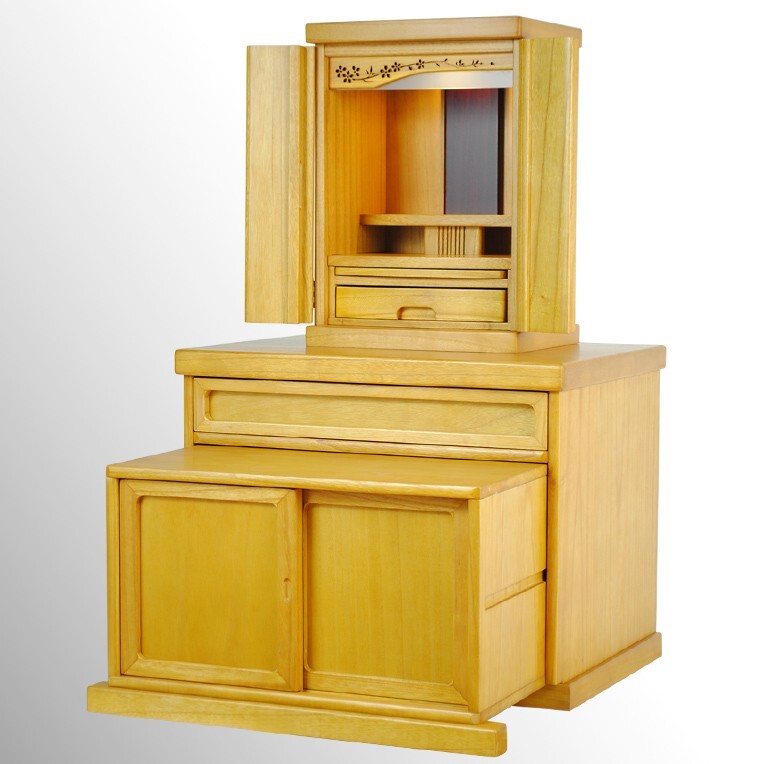 ※仏壇内部でローソクや線香の使用は禁止(火事の原因になります)、備え付けの膳引きをご利用ください