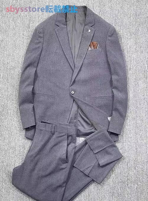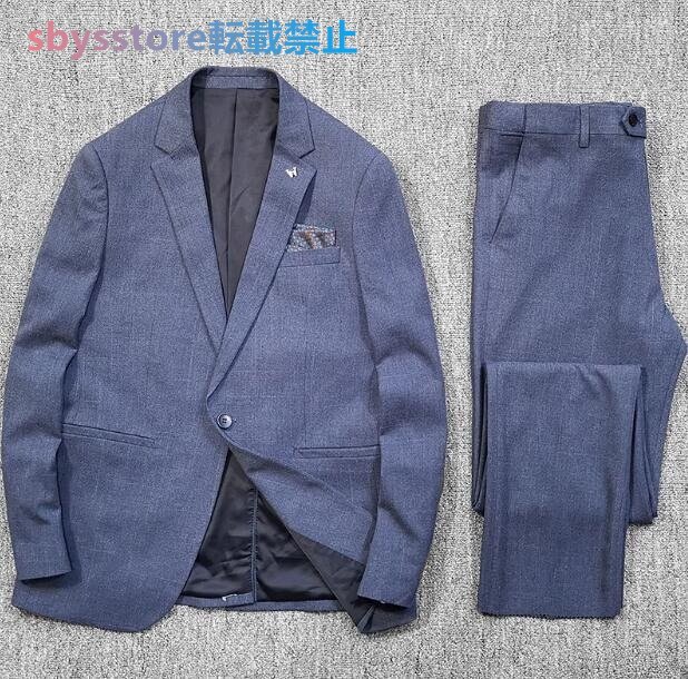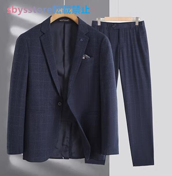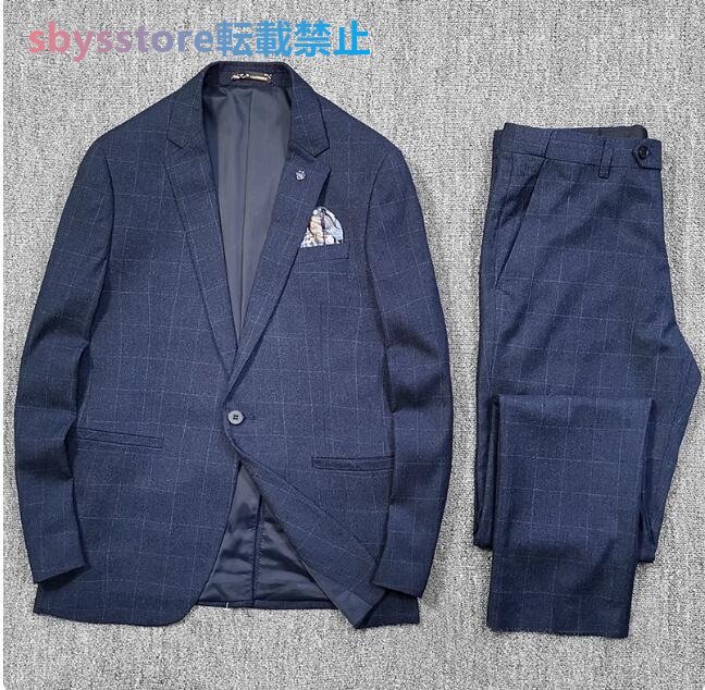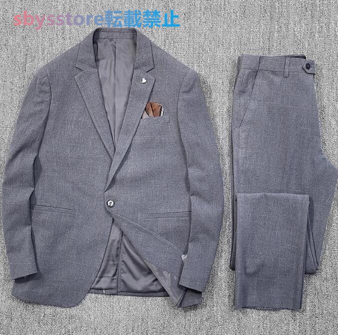 メンズ スーツセット ウール混 ビジネスフォーマル チェック柄 春 スーツ上下セット 長ズボングレー お色選択可