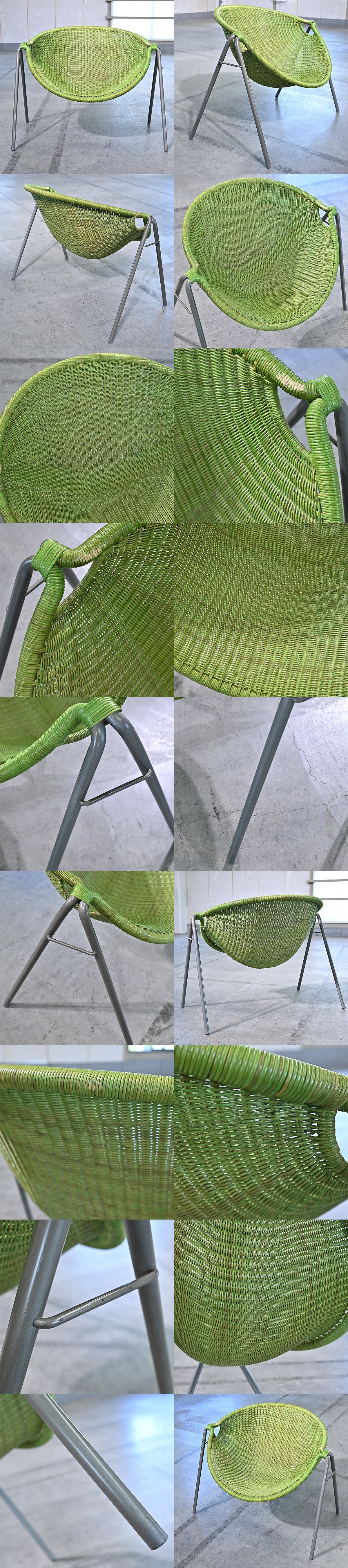 ヤマカワラタン 15万「CL-312 KANI」ラウンジチェア B 箟敏生 籐 スチール脚 シングルソファ リビング ダイニング 椅子 Yamakawa