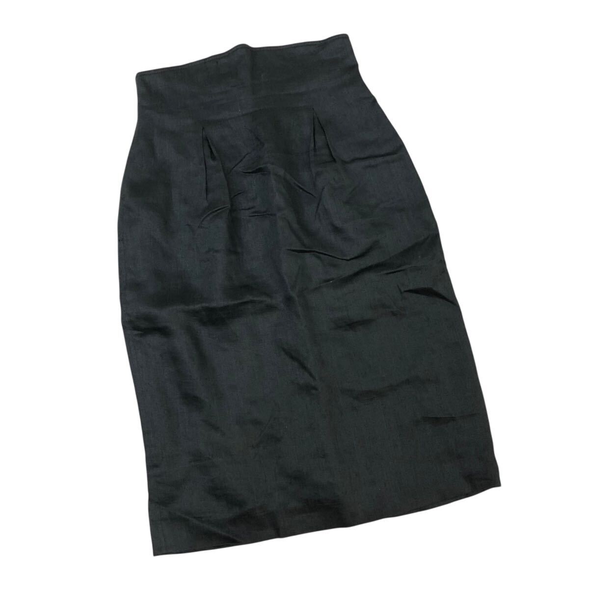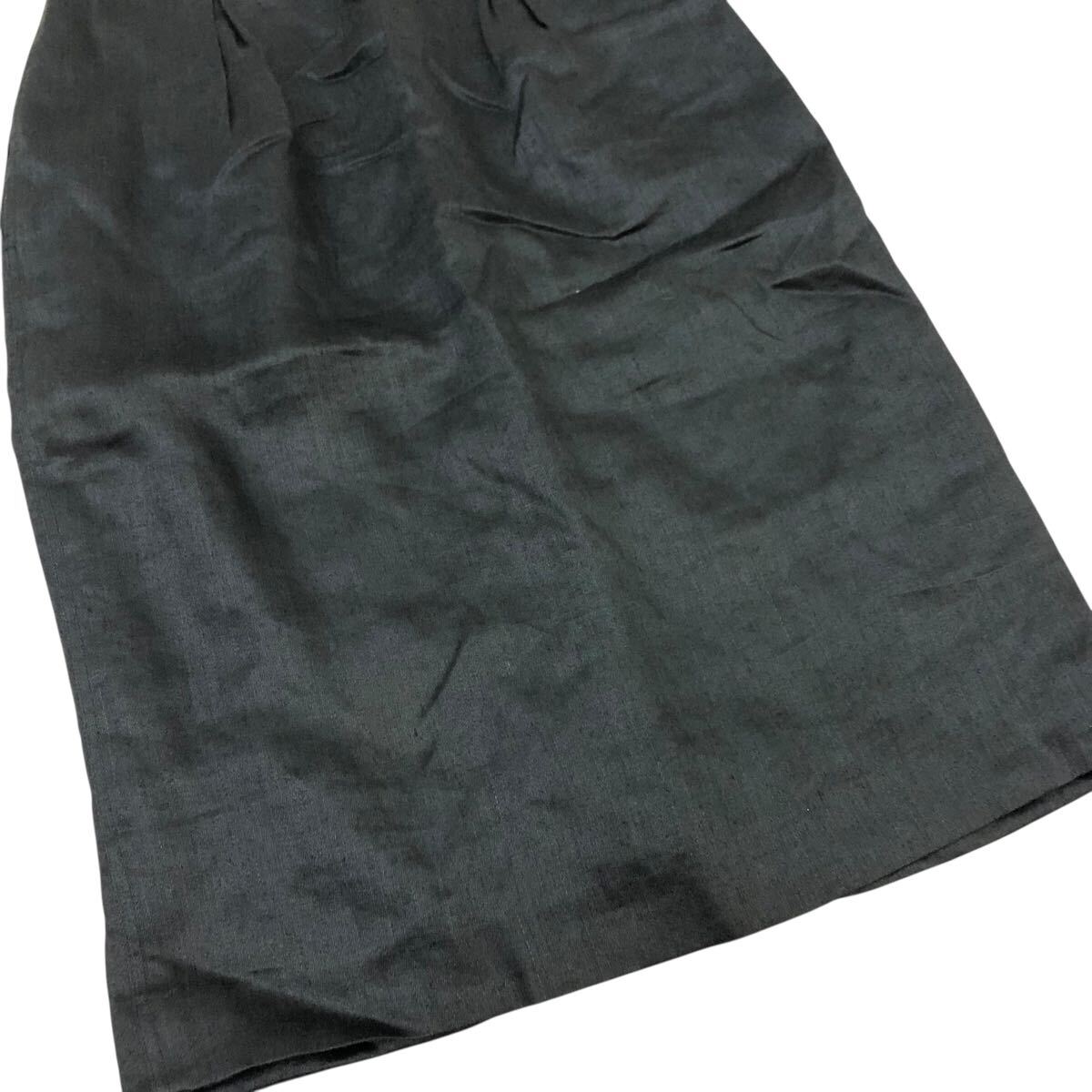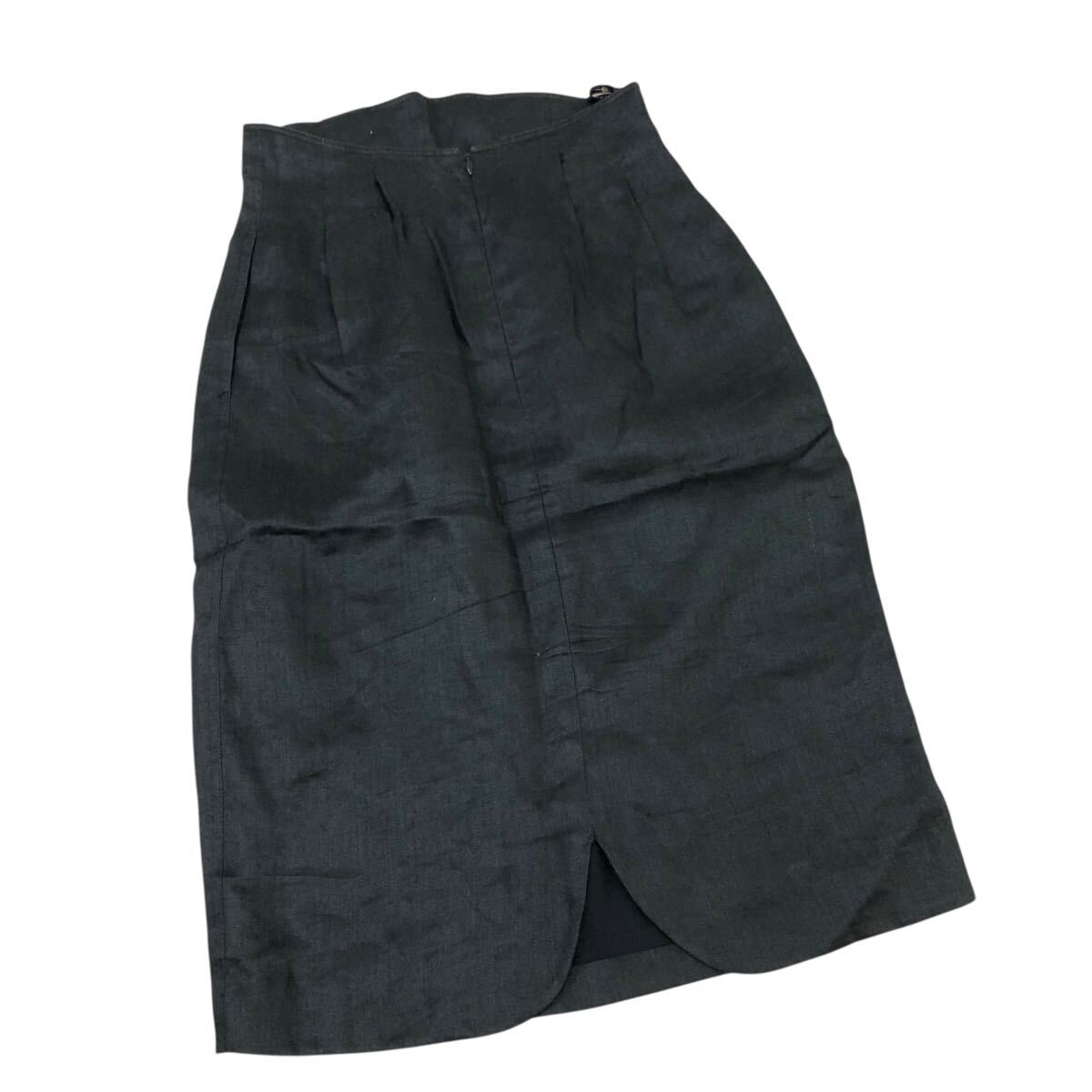 Nm311-53 伊太利屋 イタリヤ リネン 麻 100% ひざ丈 タイトスカート スカート ボトムス ブラック 黒 レディース 7A2
