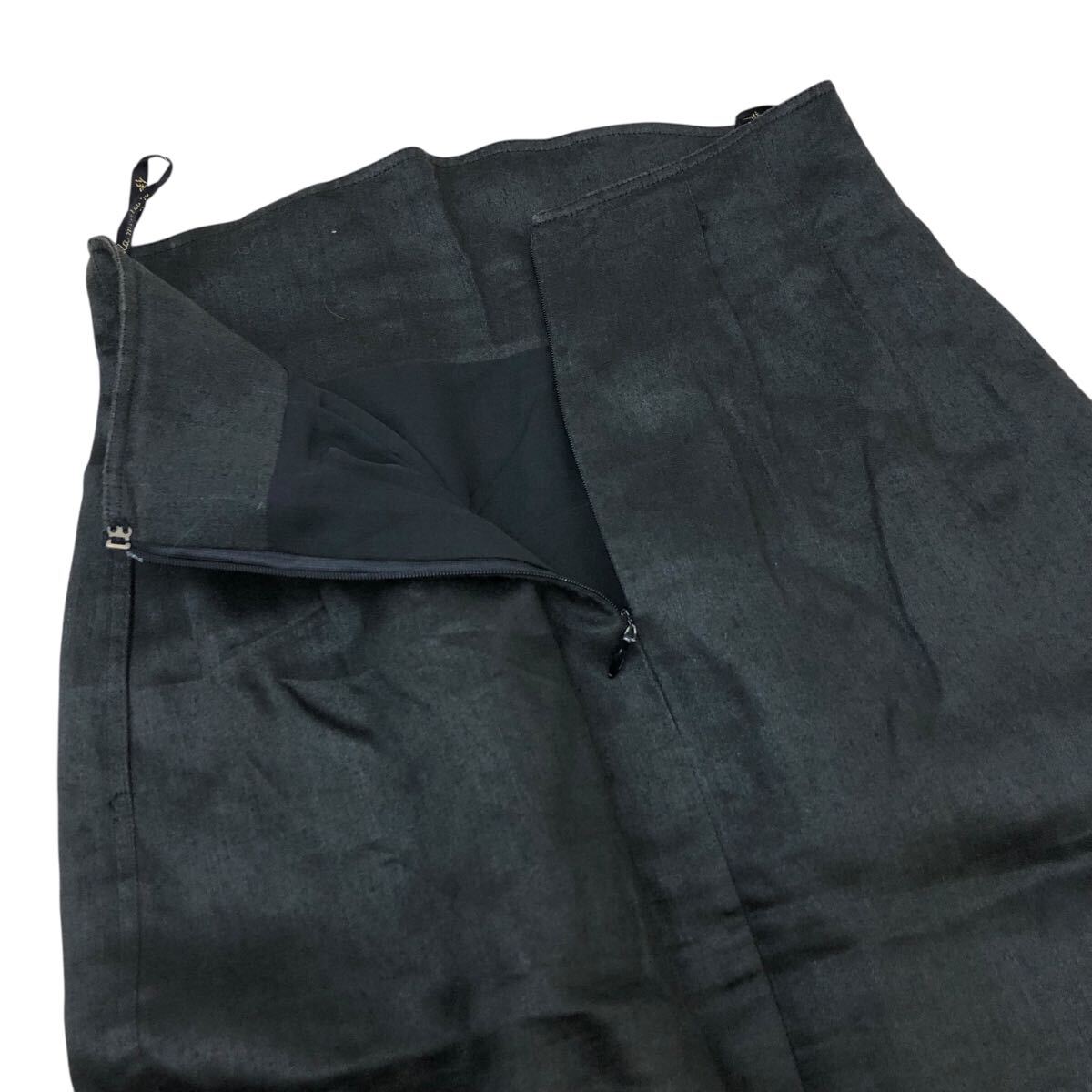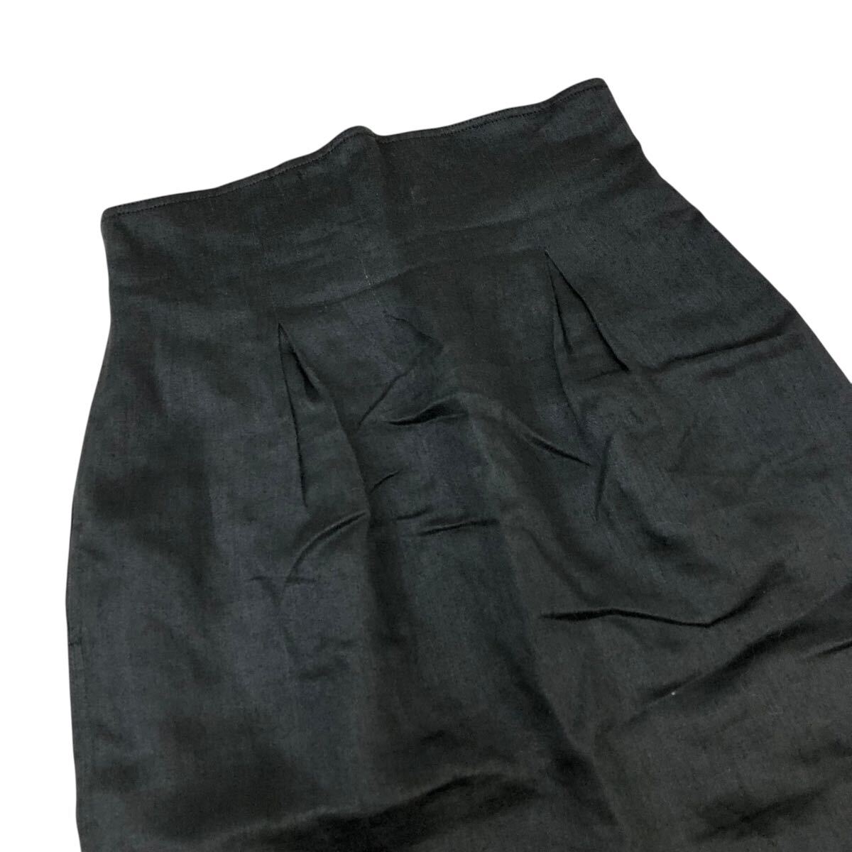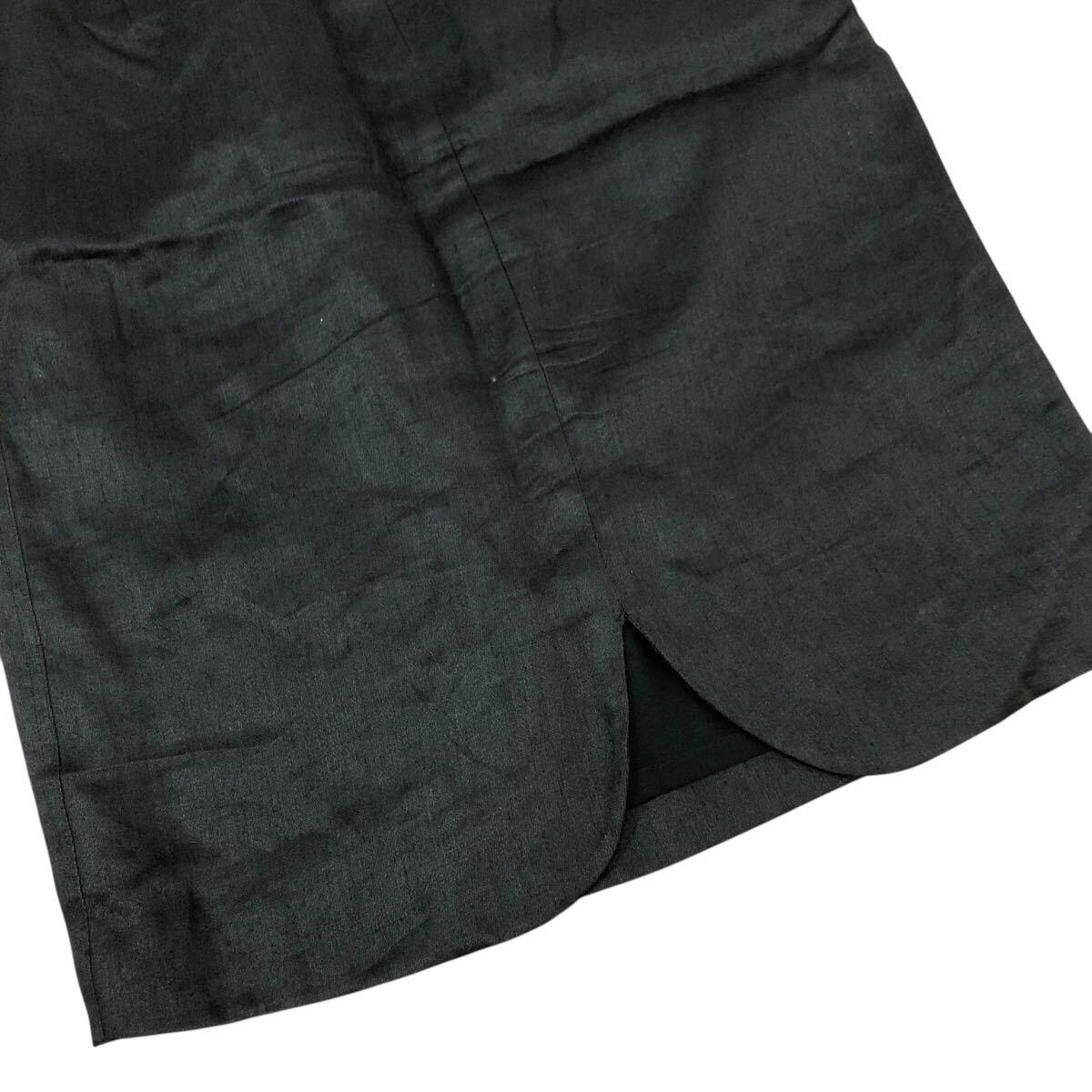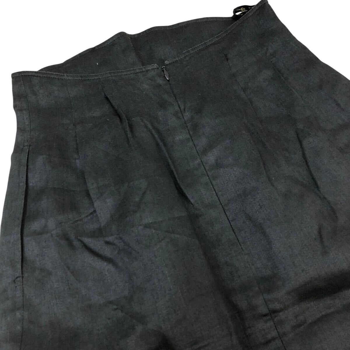 Nm311-53 伊太利屋 イタリヤ リネン 麻 100% ひざ丈 タイトスカート スカート ボトムス ブラック 黒 レディース 7A2