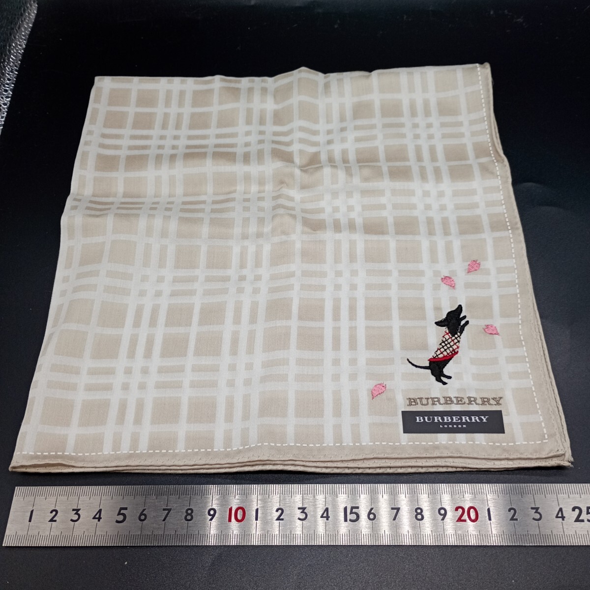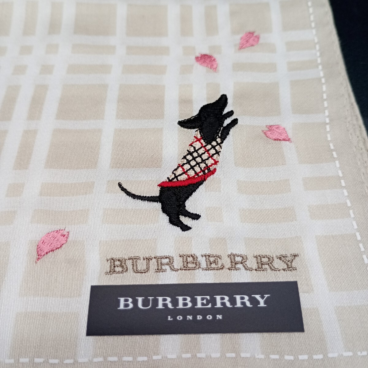 BURBERRY バーバリー ハンカチ  ベージュチェック ダックスフント・桜 刺繍 no.3021