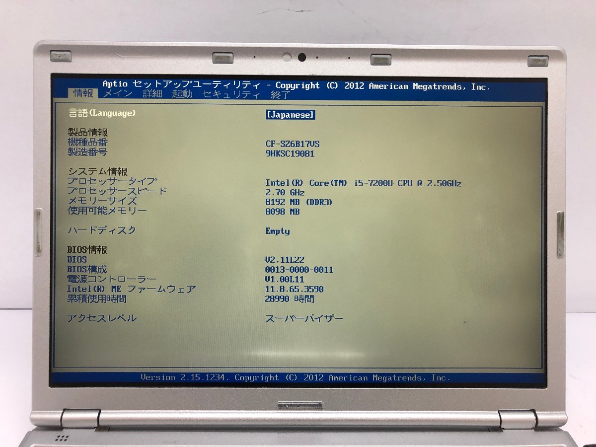 ジャンク/ Panasonic CF-SZ6B17VS Intel Core i5-7200U メモリ8.19GB ストレージ無し 【K16899】