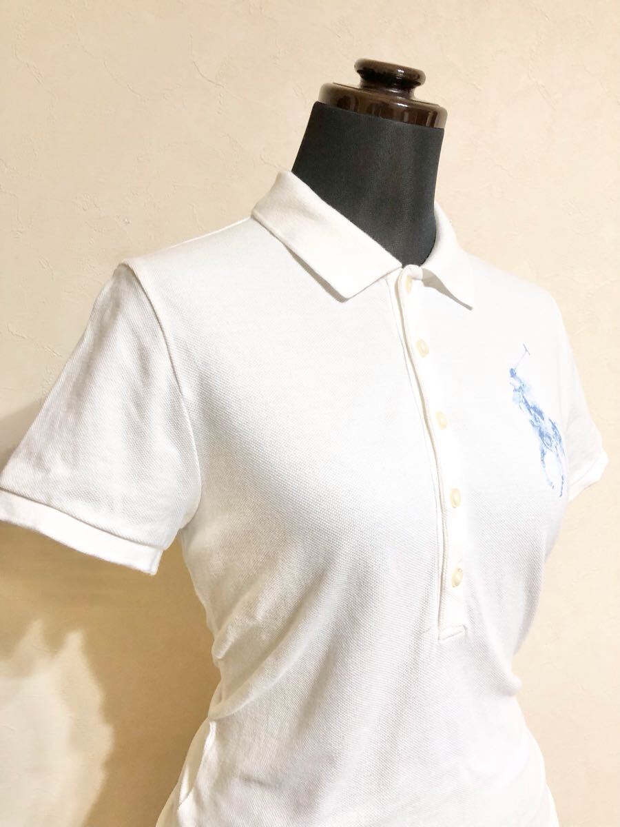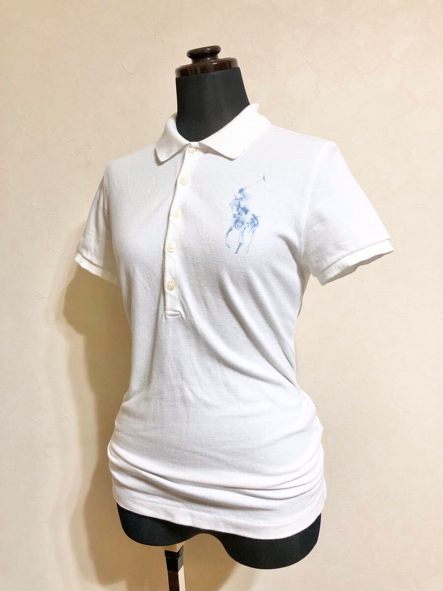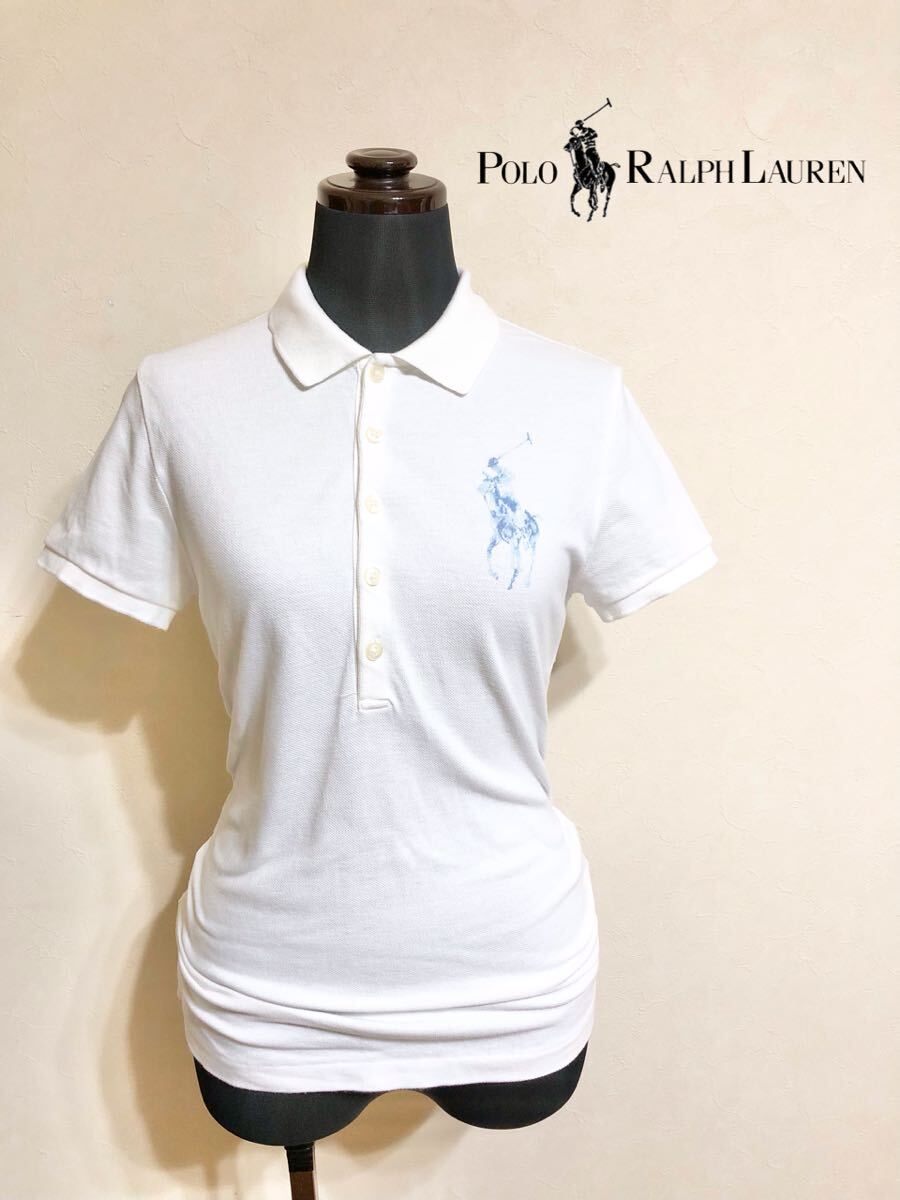 【品名】【良品】 Polo Ralph Lauren ポロ ラルフローレン ビッグポニー レディース スキニー 鹿の子 ポロシャツ トップス サイズM 半袖 ホワイト