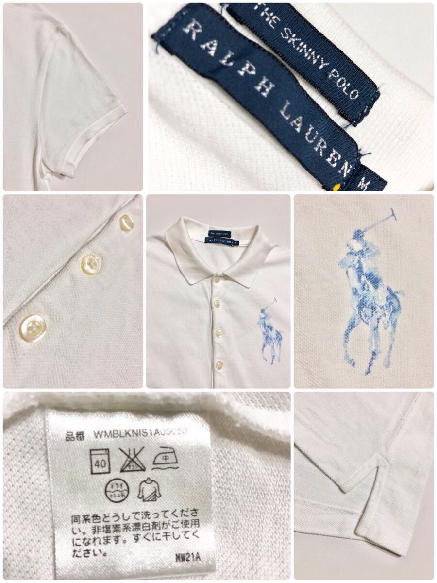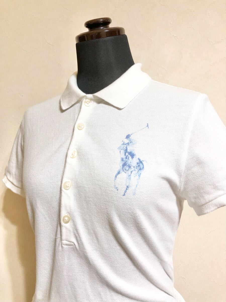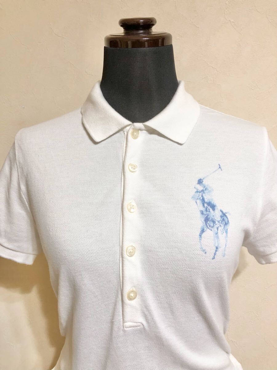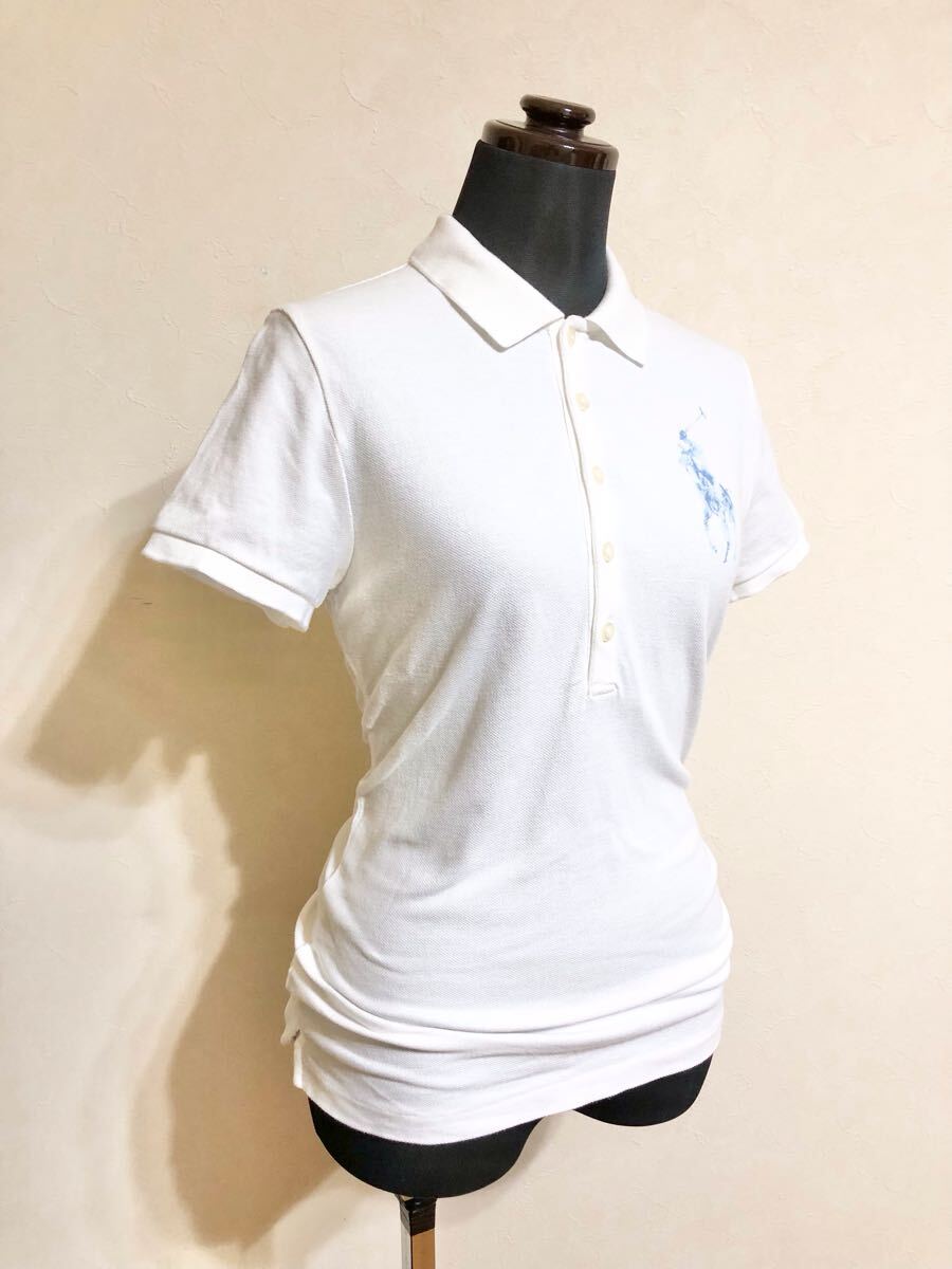 【品名】【良品】 Polo Ralph Lauren ポロ ラルフローレン ビッグポニー レディース スキニー 鹿の子 ポロシャツ トップス サイズM 半袖 ホワイト