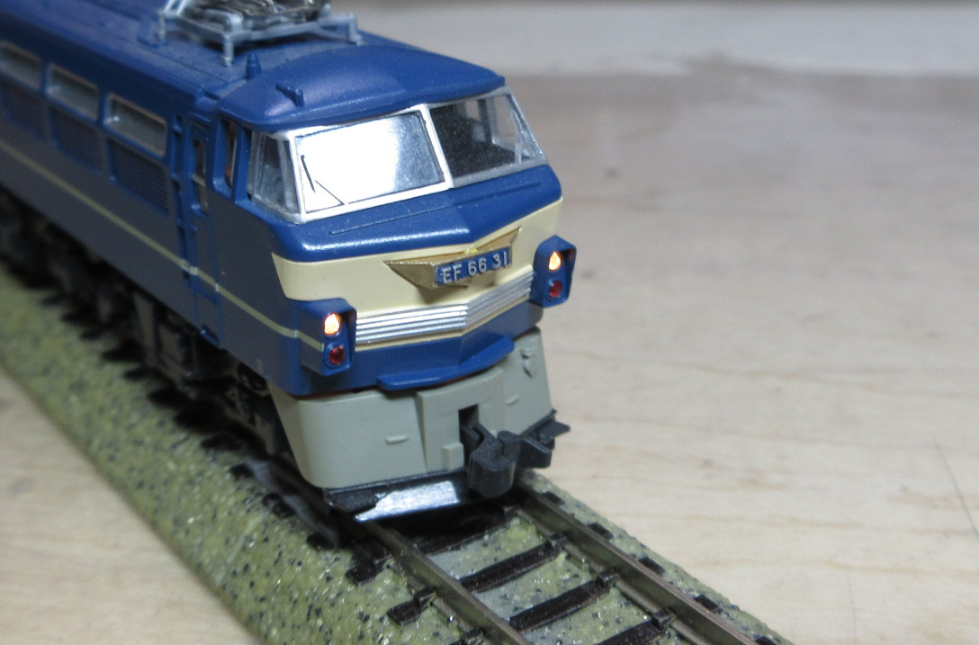 - 線路に電源を供給するとモーター車のEF66は前後に走行する
