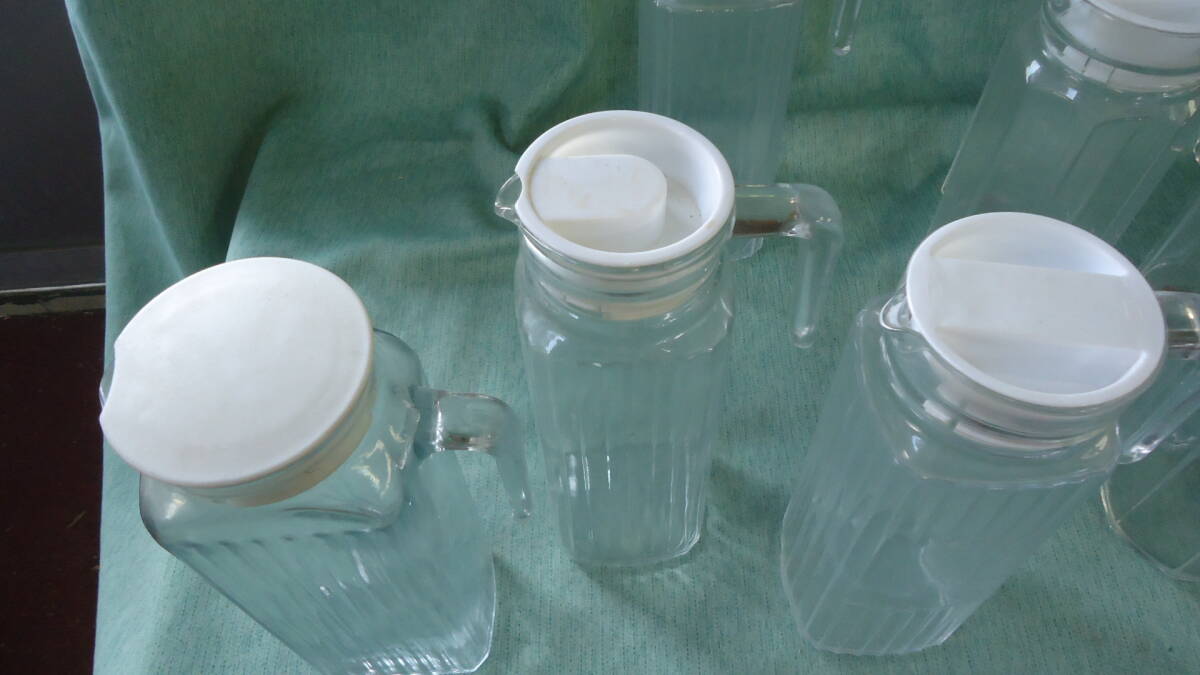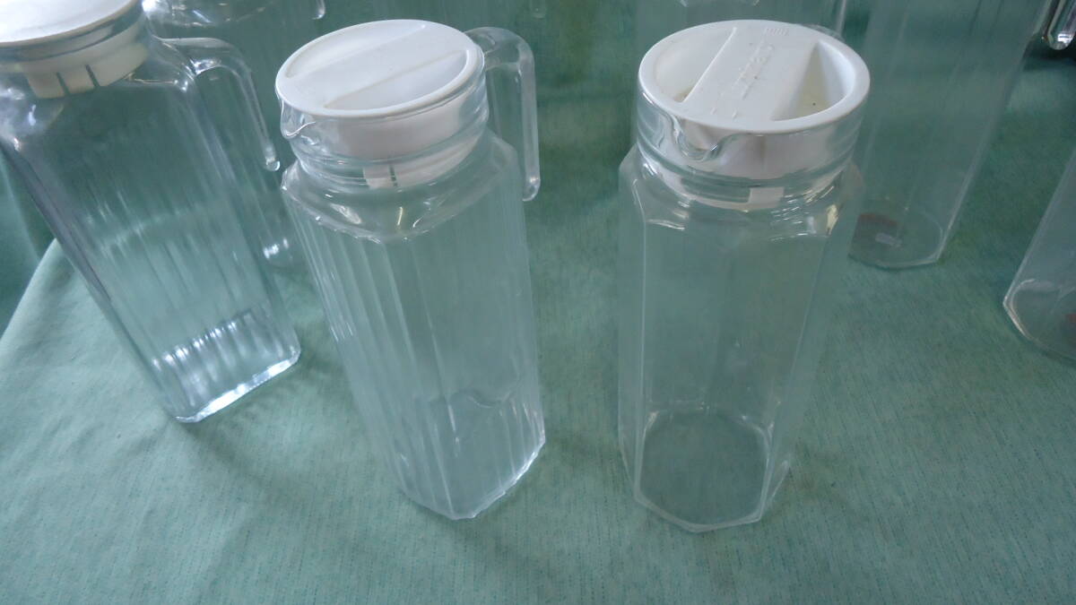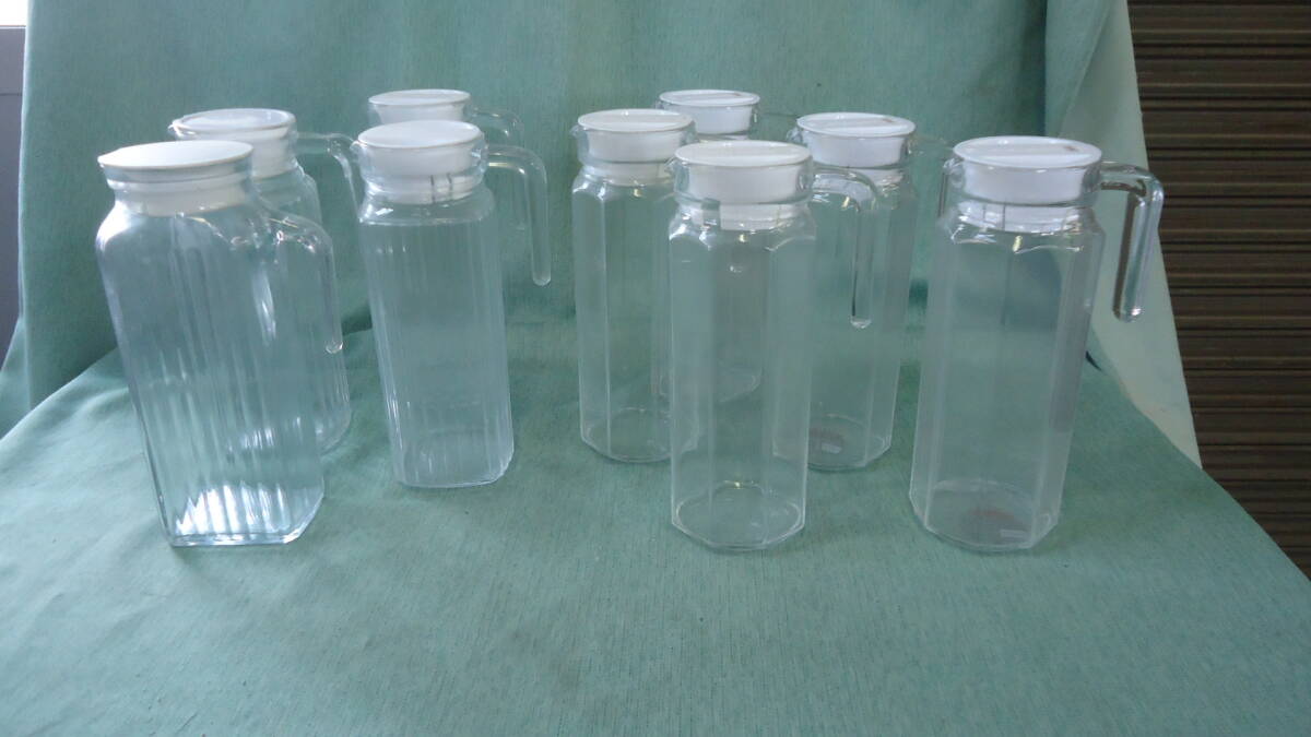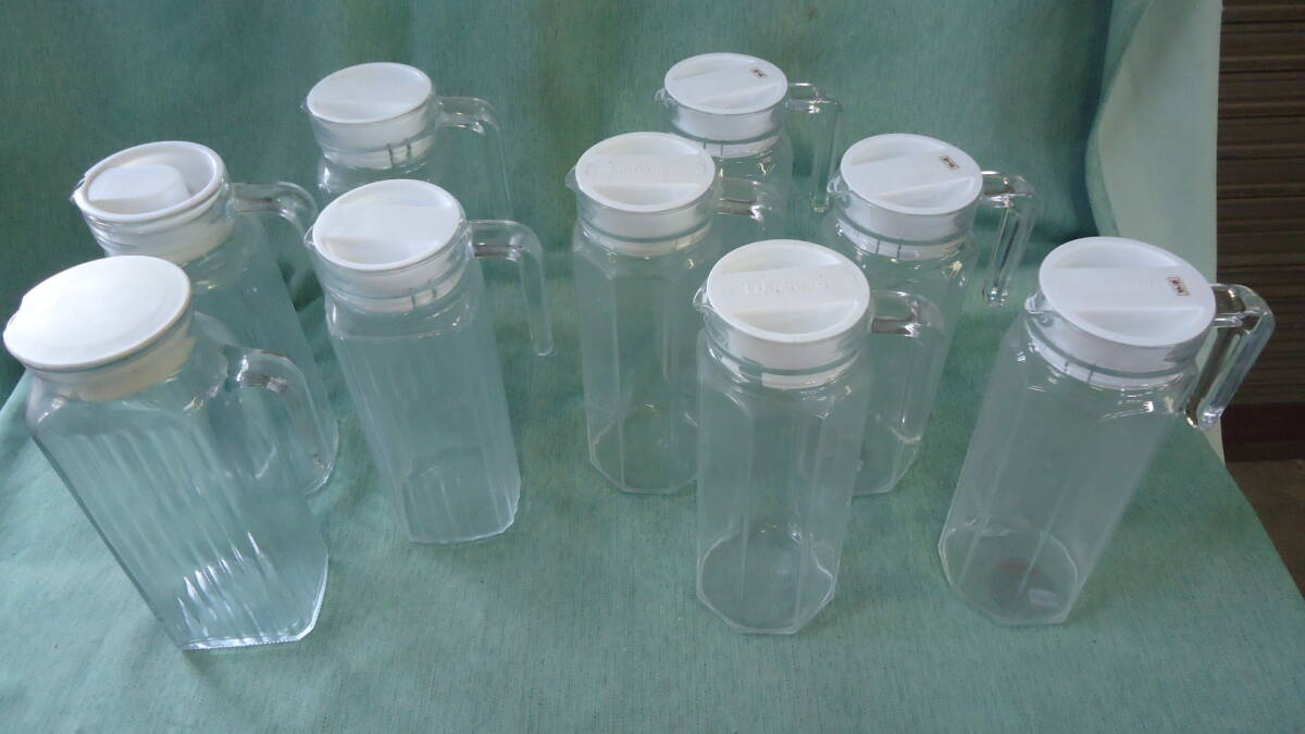 メーカー不明のガラス製ウォーターポットを9本セットにして一括販売で出品しております。