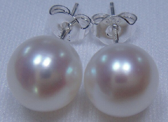 サイズピアス 真珠玉:8.5mm 形:正面からは真円ですが、横からは若干平べったい形です。