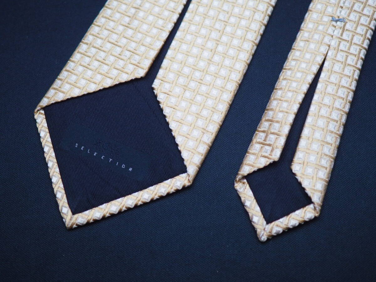 美品【HUGO BOSS ヒューゴ ボス】 E2880 シャンパン系 SILK ブランド ネクタイ 古着 良品