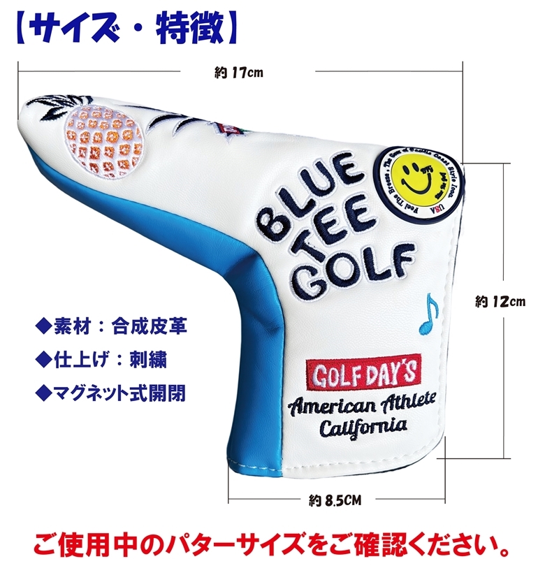 ■2オークション【BPT-ブルー】ブルーティーゴルフ【2024アロハパイナップル】パターカバー(ブレード型) BLUE TEE GOLF DHC-009 送料無料