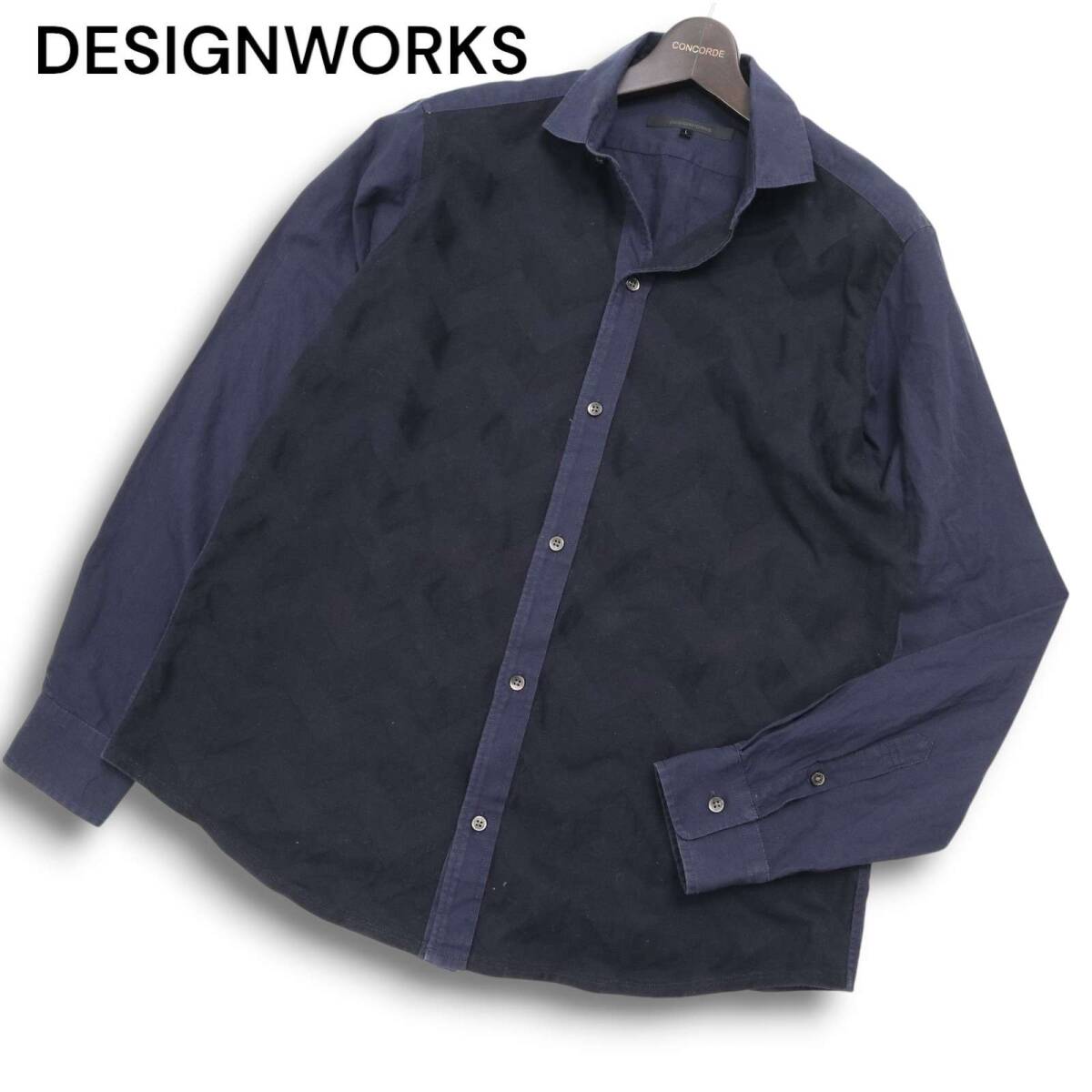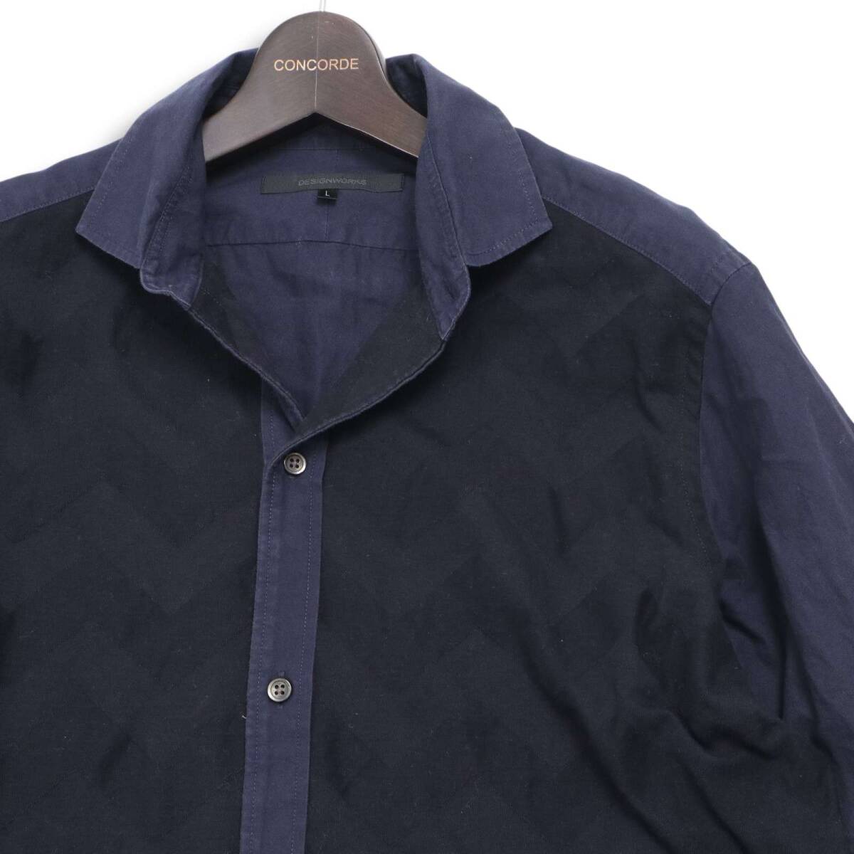 DESIGNWORKS デザインワークス アバハウス 通年 切替★ 長袖 オーバーサイズ シャツ Sz.L メンズ 紺 ネイビー