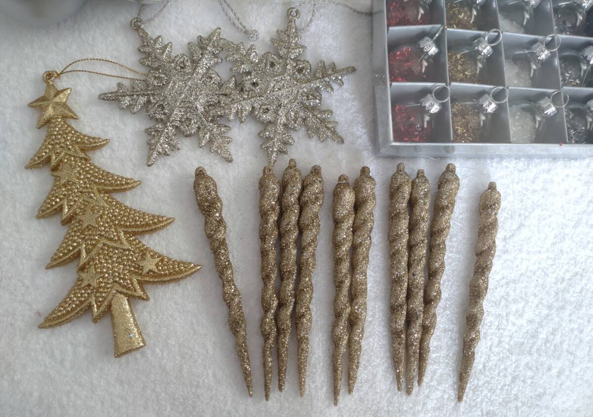 ゴールドとシルバーのきらきらオーナメントをまとめて計26点: