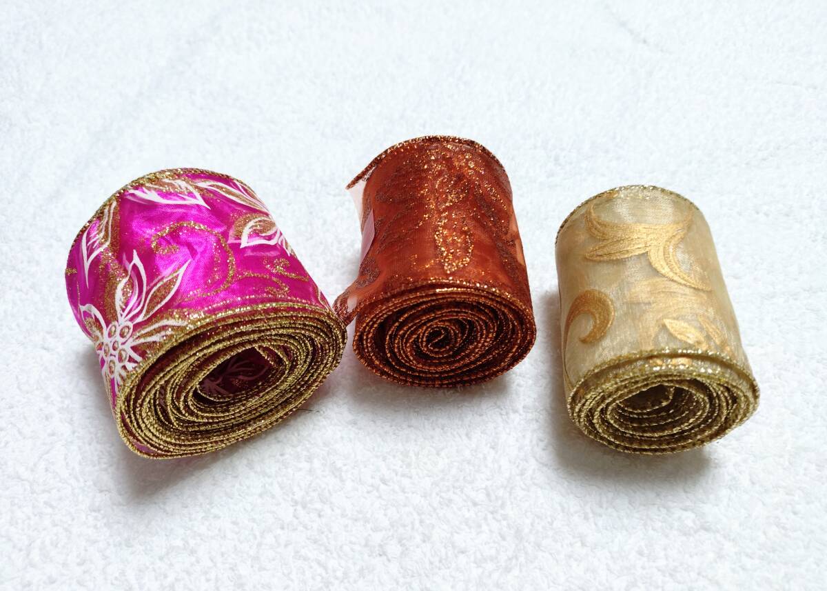 クリスマス ツリー やオーナメント にお使いいただけるワイヤー入りディスプレイリボン 6点: