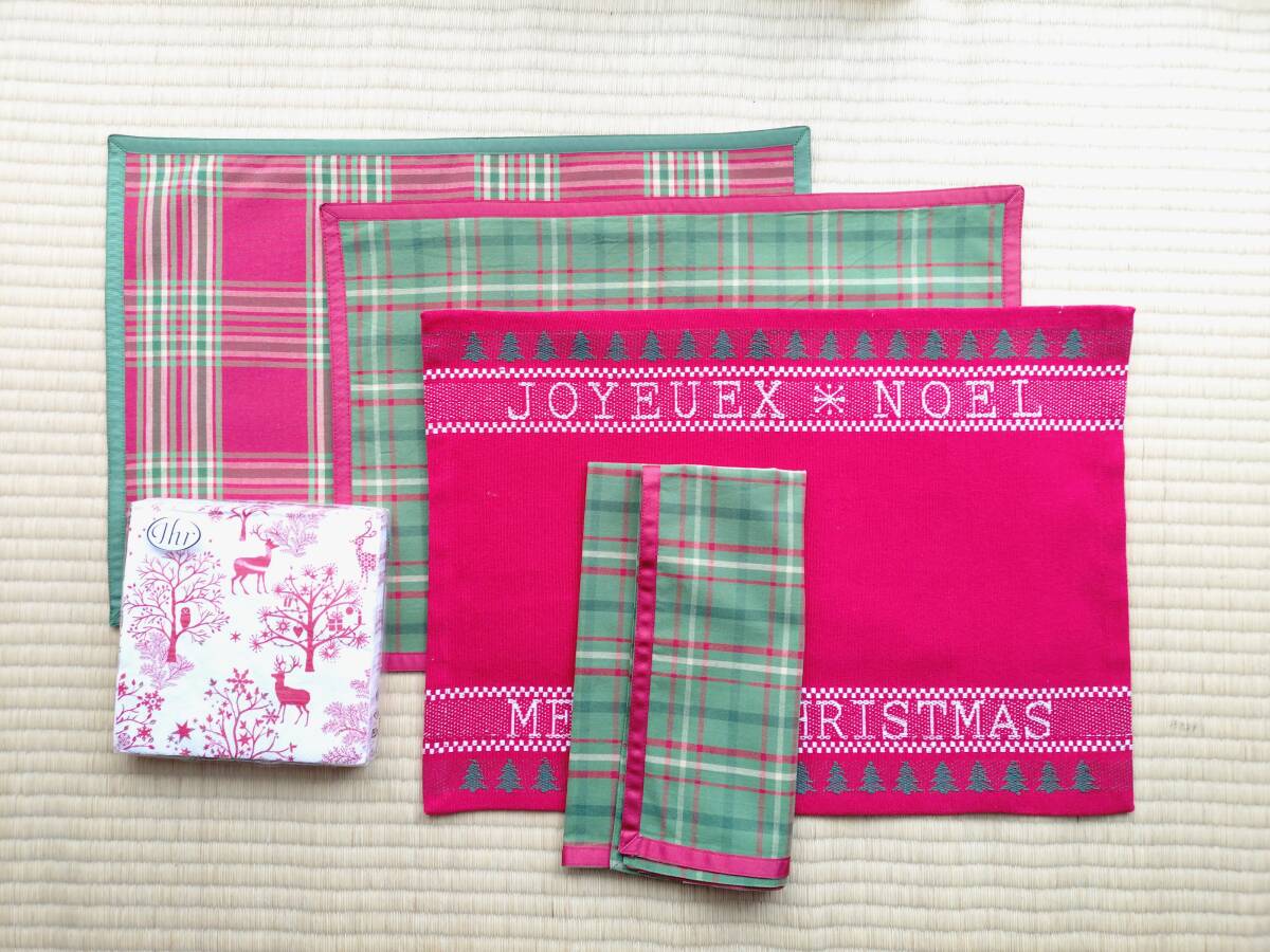 Martha Stewart Collection の クリスマスプリントのランチョンマット (赤系とグリーン系)2枚: