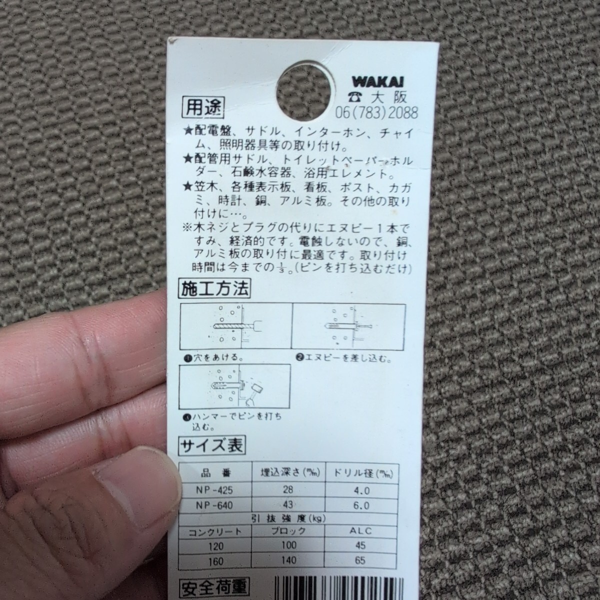 ジャンク品/長期保管/中古/WAKAI/F-025/エヌピー(NP-640)/オールプラグ/打込式/埋込深さ43mm/ドリル径Φ6.0mm/1P50本入り
