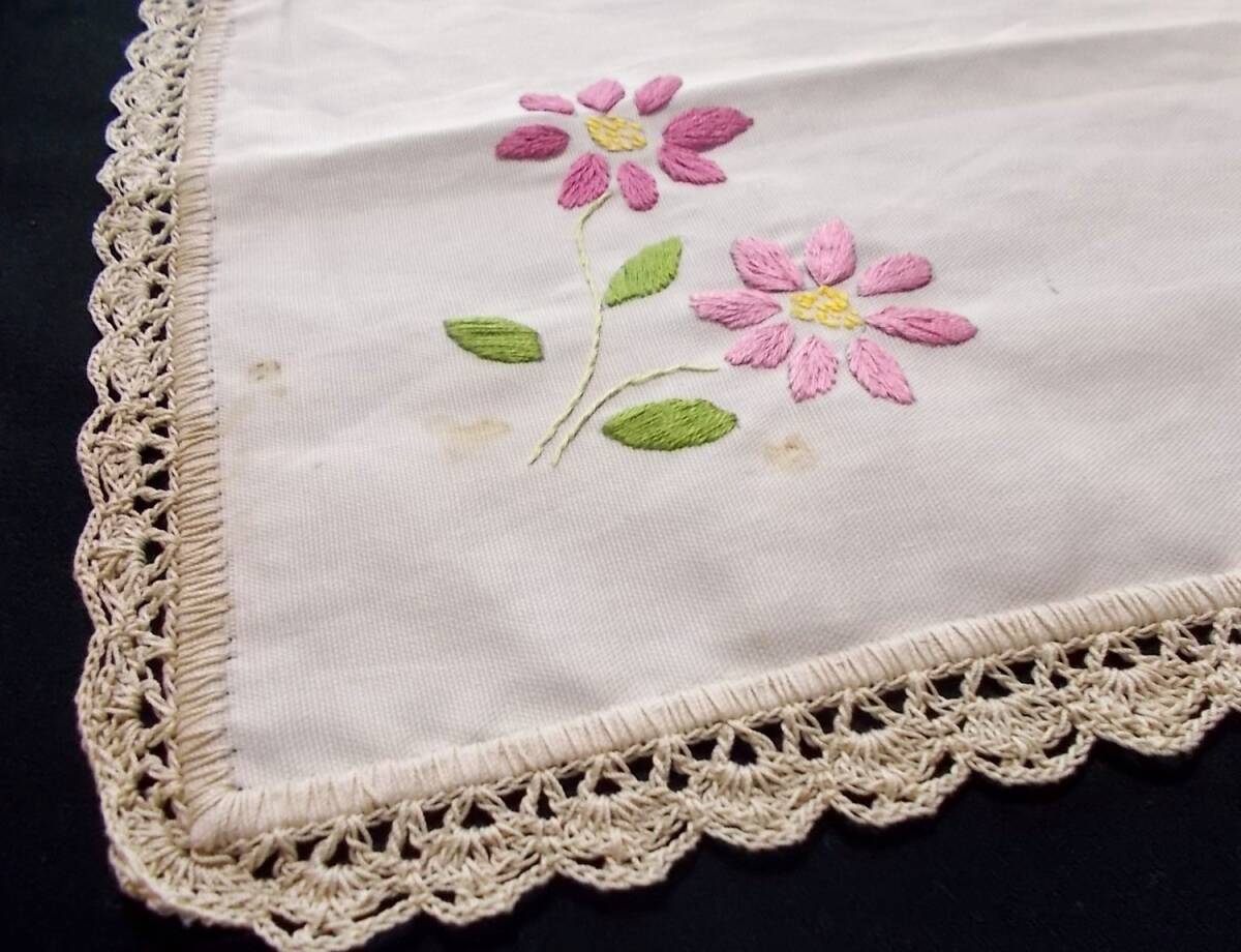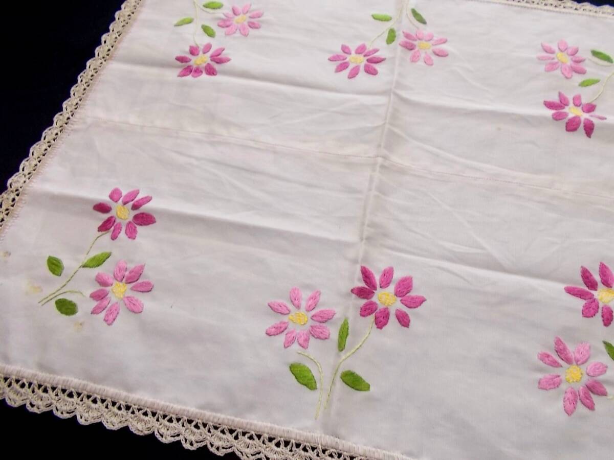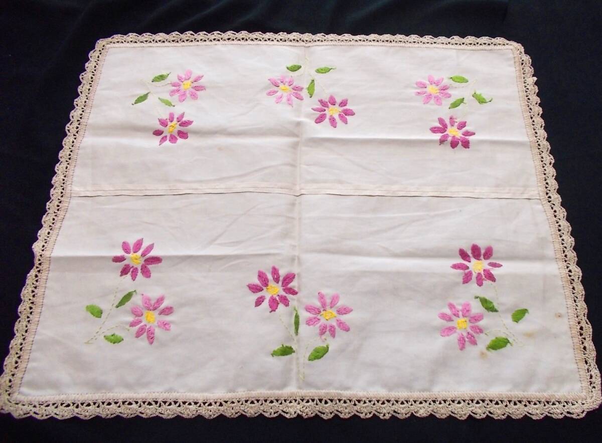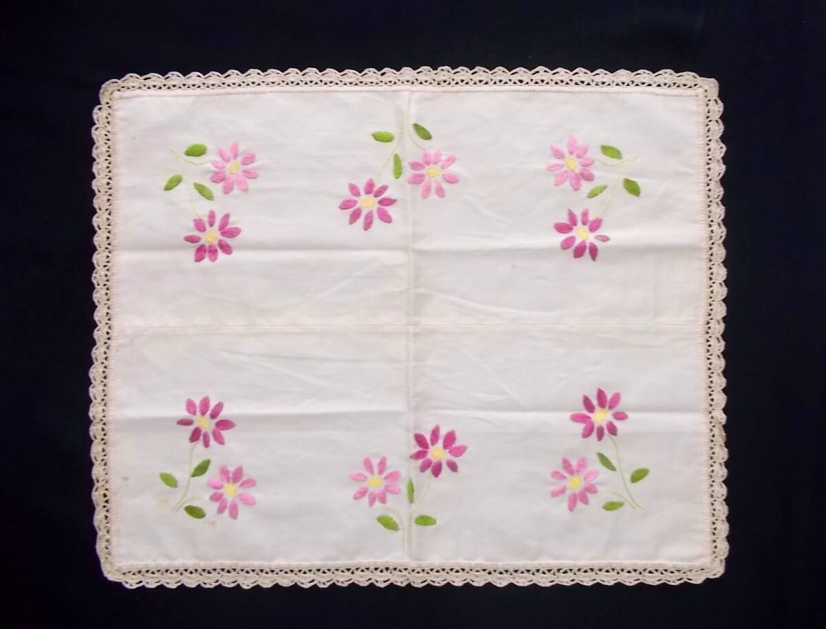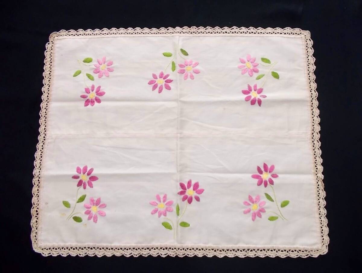ランチョンマット/ティーマット★52×42cm/花の刺繍入り/レース編み縁どり/ホワイト ベージュ★コースター/置物敷き/花台/飾り台/置物台★
