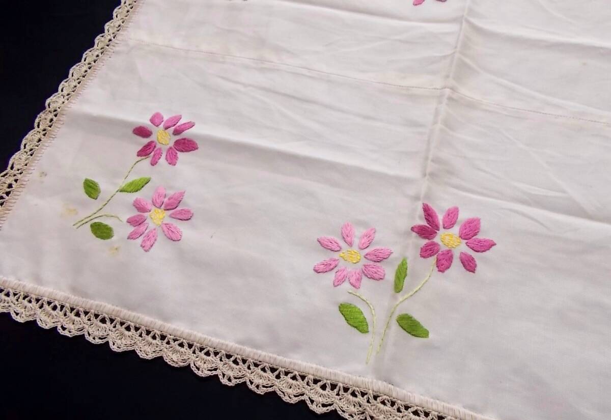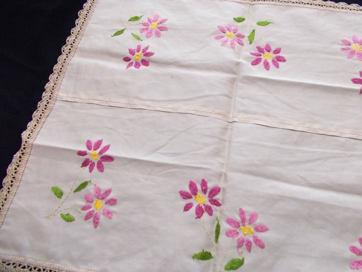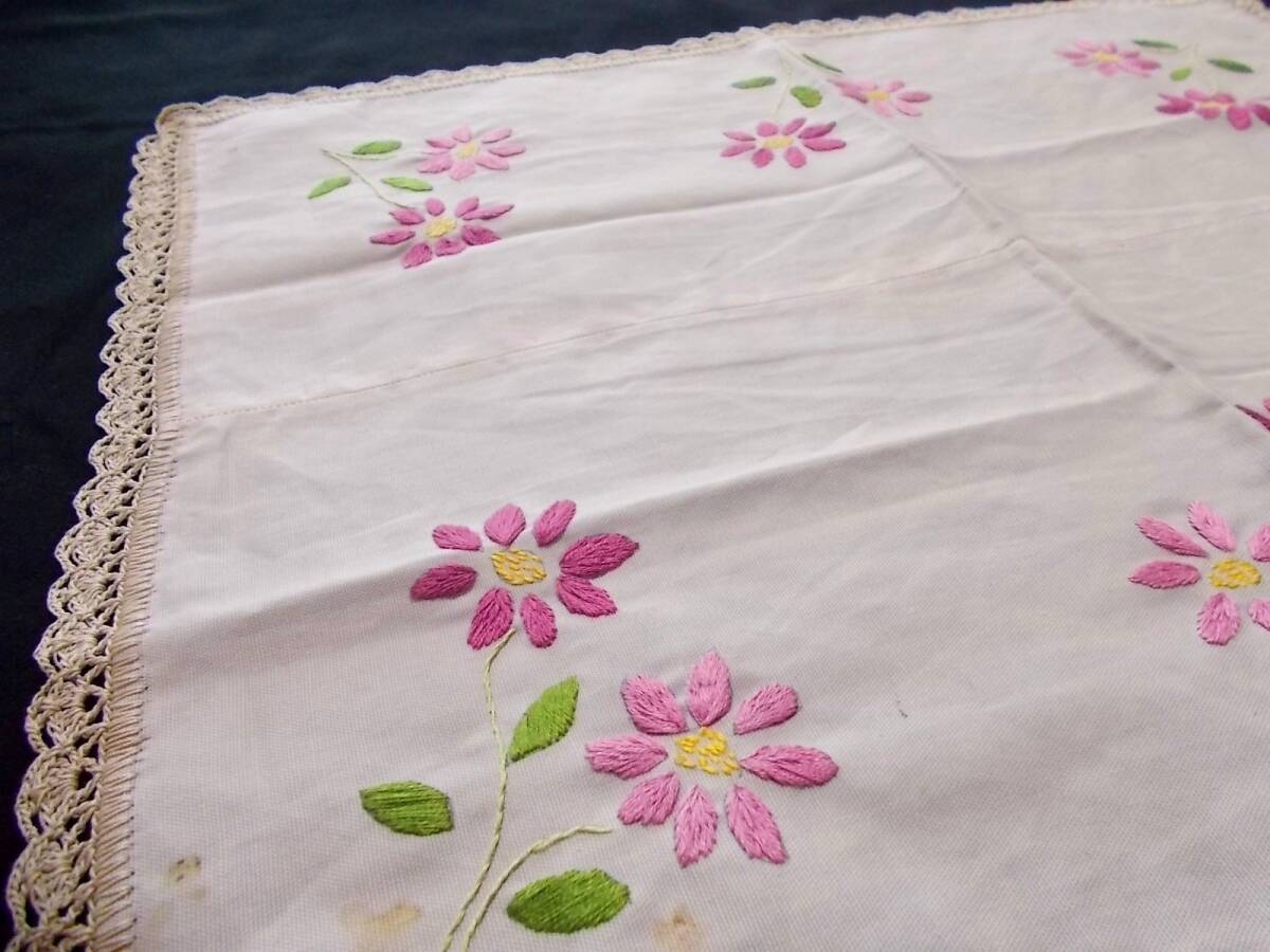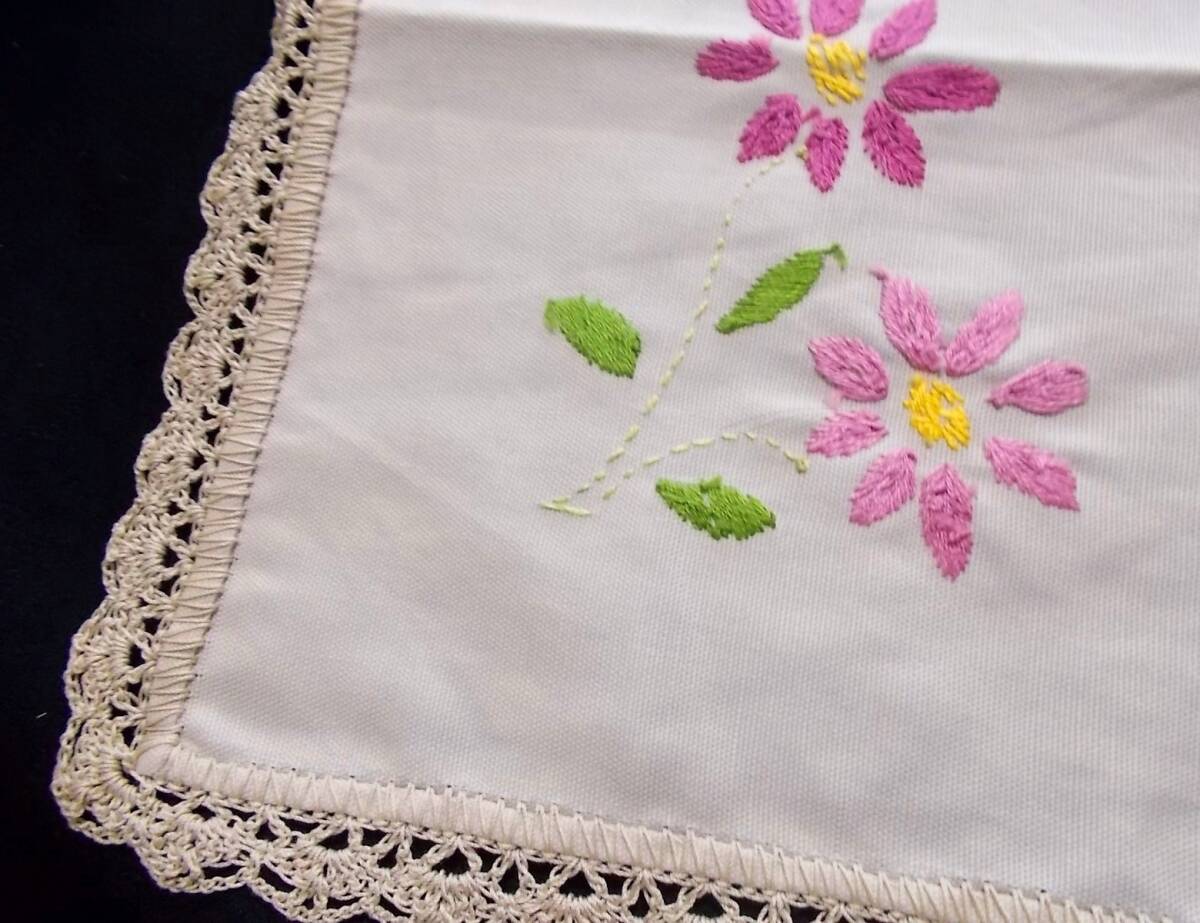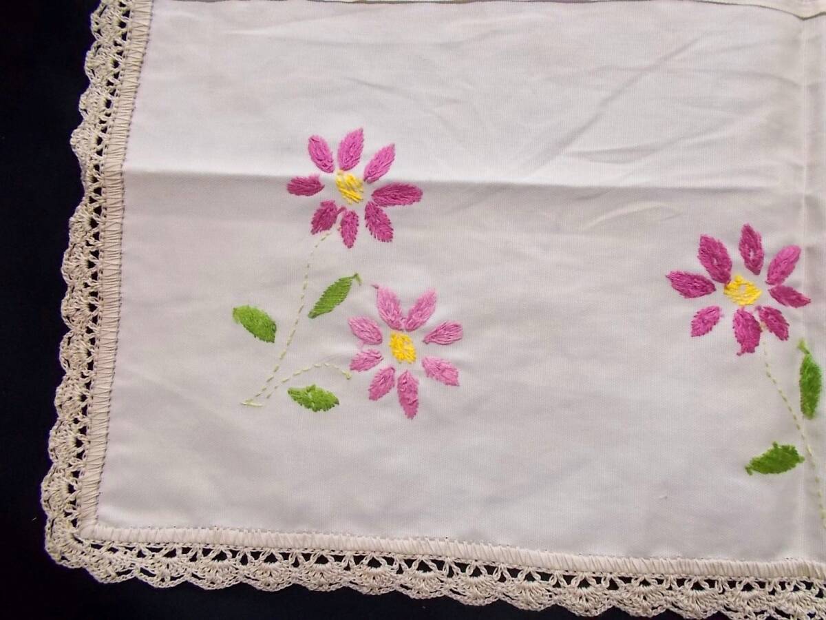 ランチョンマット/ティーマット★52×42cm/花の刺繍入り/レース編み縁どり/ホワイト ベージュ★コースター/置物敷き/花台/飾り台/置物台★