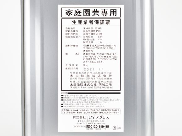 汎用肥料であり、野菜・花の他、さつき・盆栽にも使用されています。
