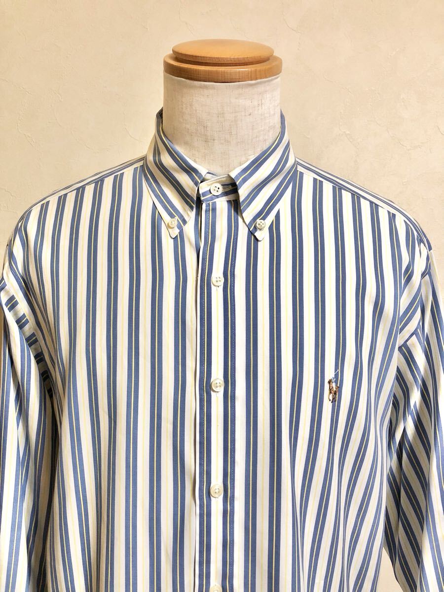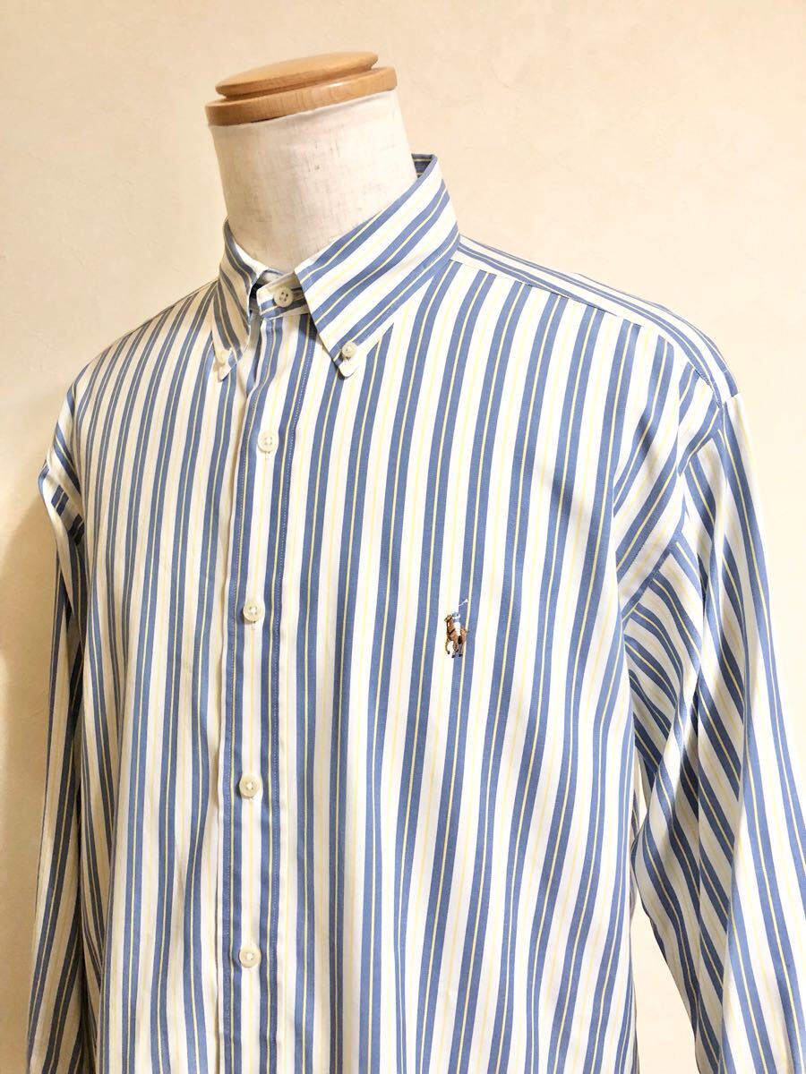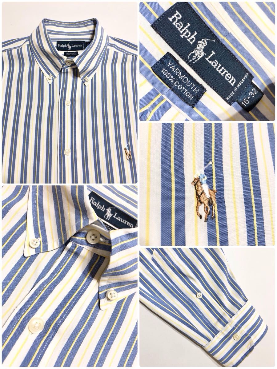 【品名】【良品】 Polo Ralph Lauren ポロ ラルフローレン ボタンダウンシャツ ストライプ柄 トップス サイズ16-32 長袖 青 白 黄
