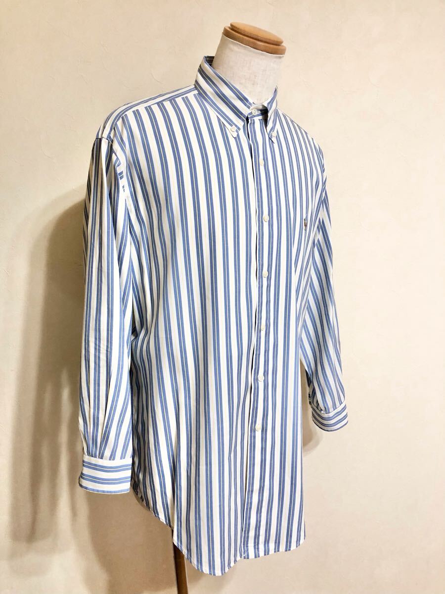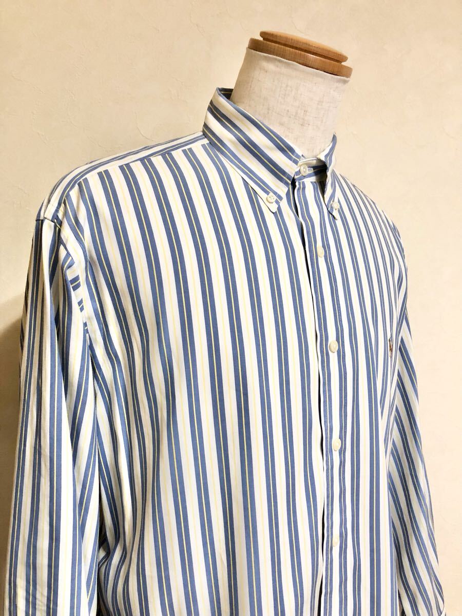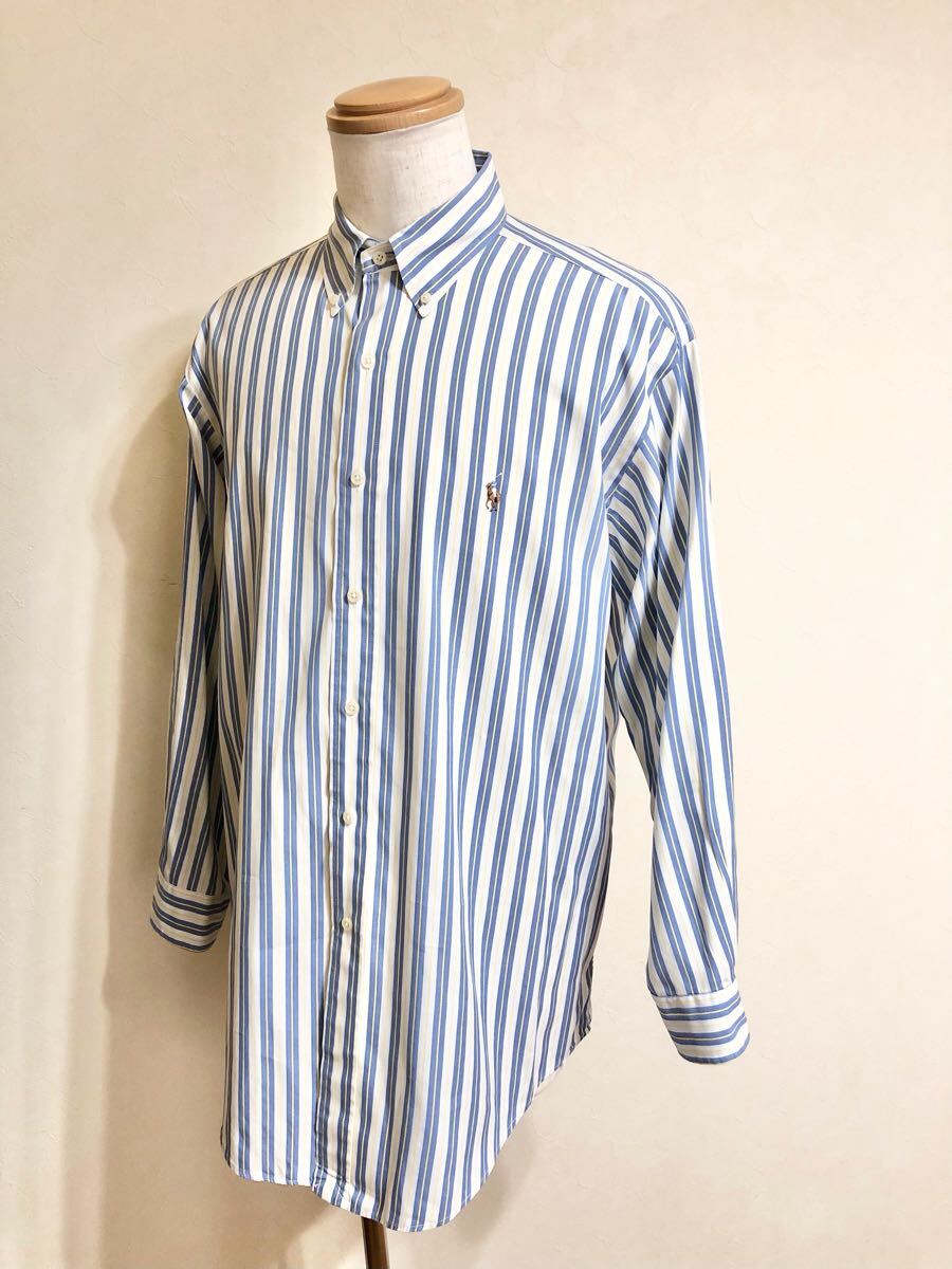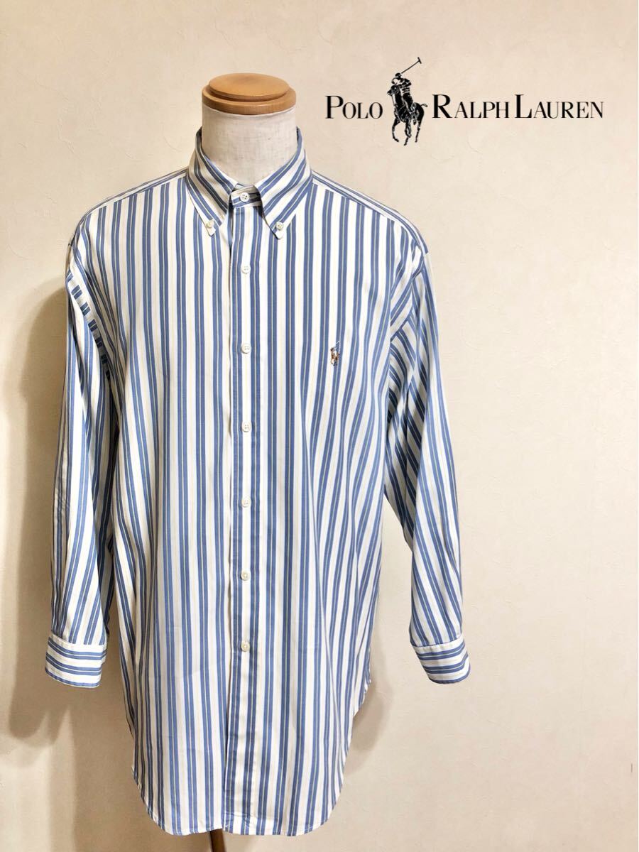 【品名】【良品】 Polo Ralph Lauren ポロ ラルフローレン ボタンダウンシャツ ストライプ柄 トップス サイズ16-32 長袖 青 白 黄