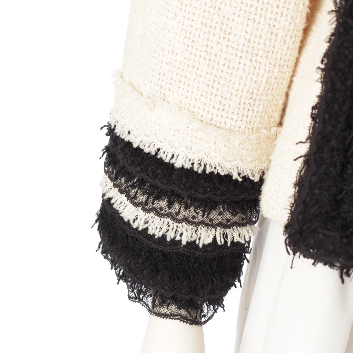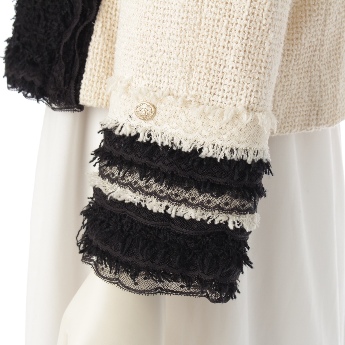 ジップにくすみ、左袖に汚れ、レース部分に汚れ/毛羽立ち、内襟に汚れ、保管臭のようなニオイ
