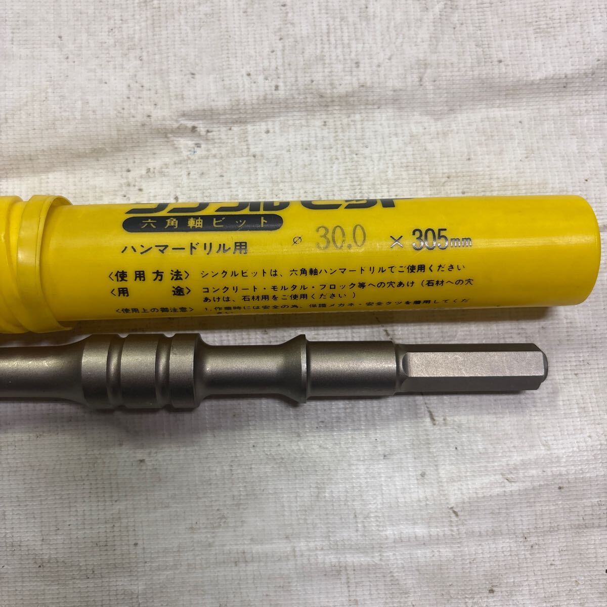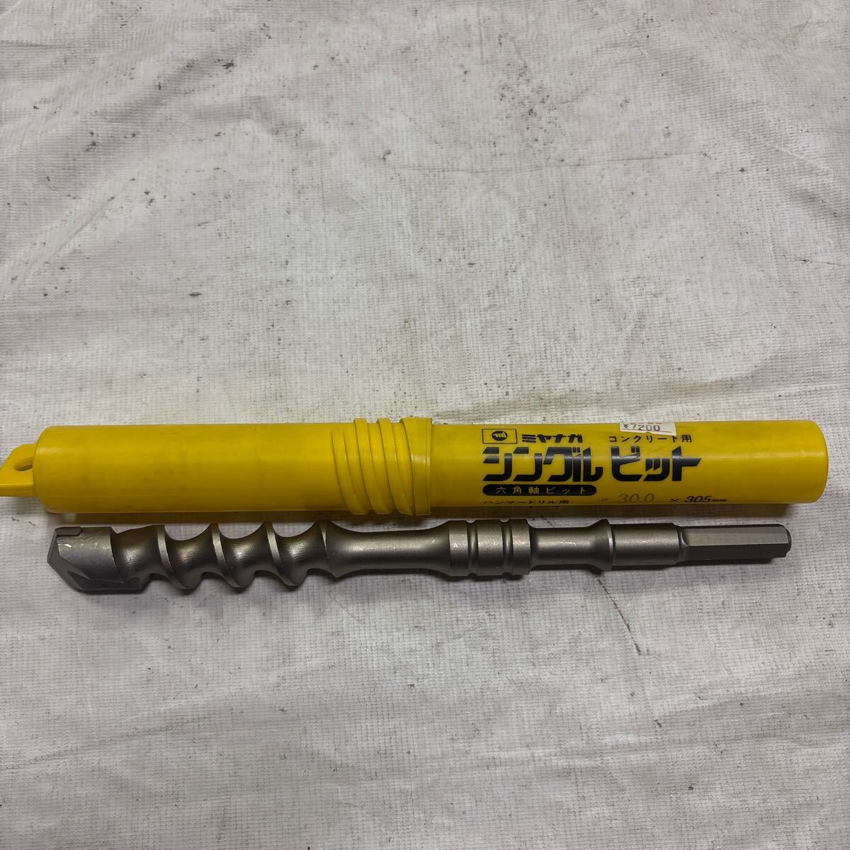 ミヤナガ、コンクリート用、シングルビット、ハンマードリル用、六角軸ビット30mmX305mm、コンクリート、モルタル、ブロック用、未使用、保管品です。パッケージに汚れが見受けられます。