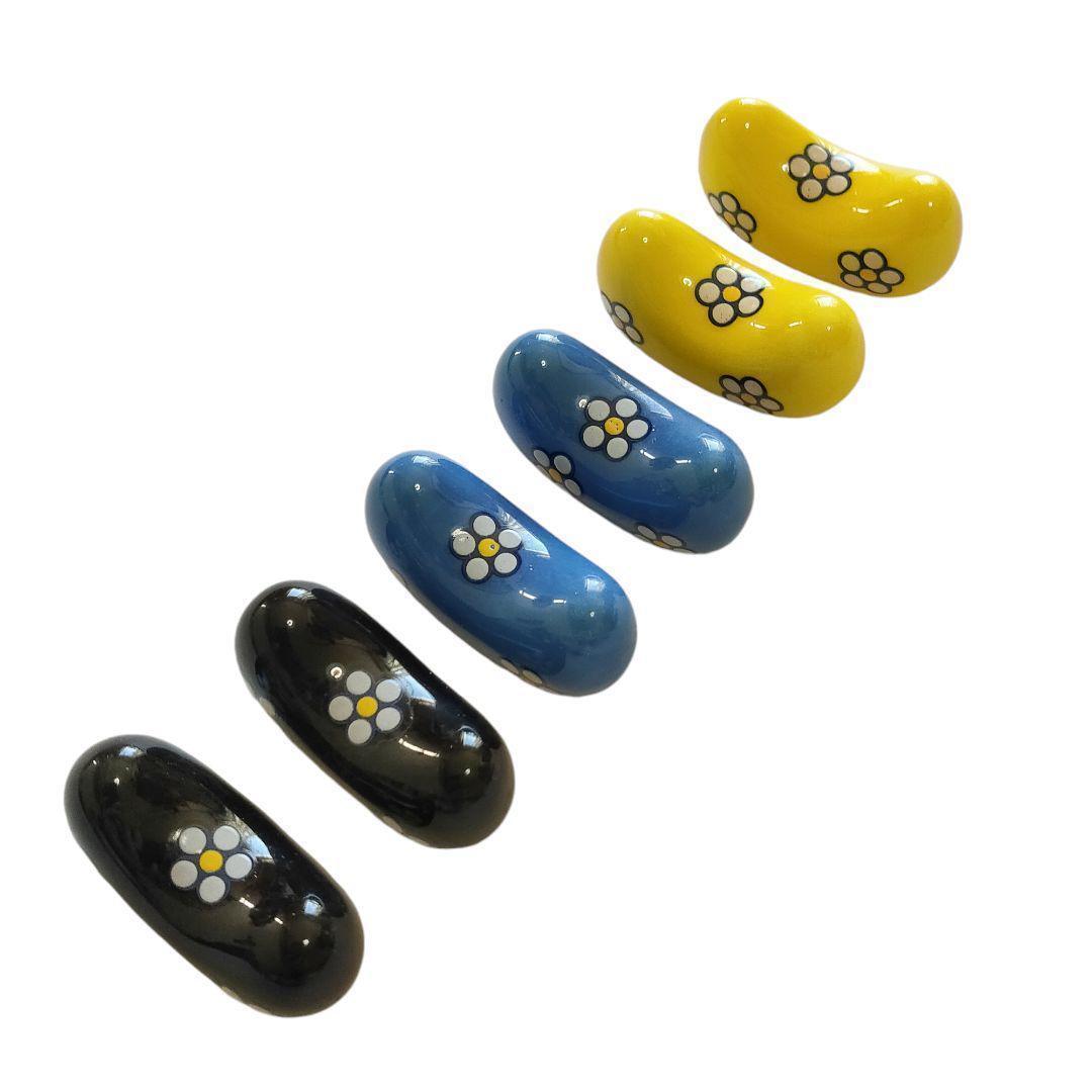 お菓子のビーンズのような形のかわいらしい3色の箸置きの6点セットです。