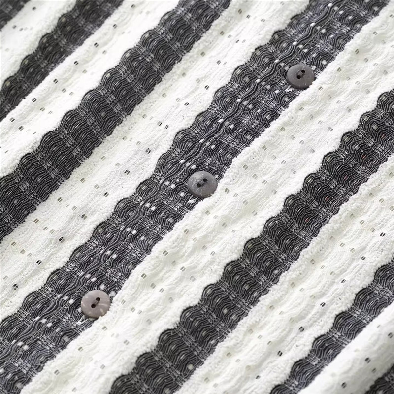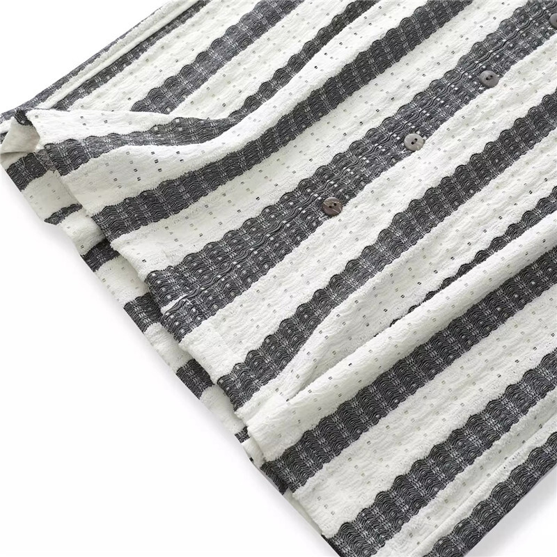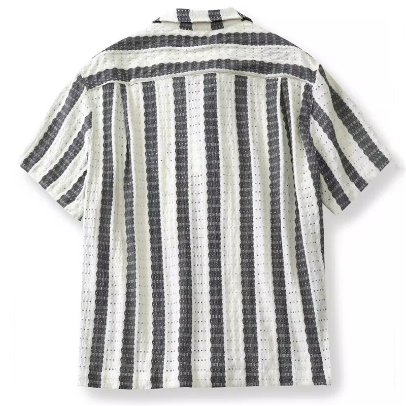 T8800-2XL 新品 ジャカード 編み ストライプ メッシュ サマー シャツ 通気性 速乾 メンズ 半袖 清涼感 盛夏 開襟 オープンカラー シャツ