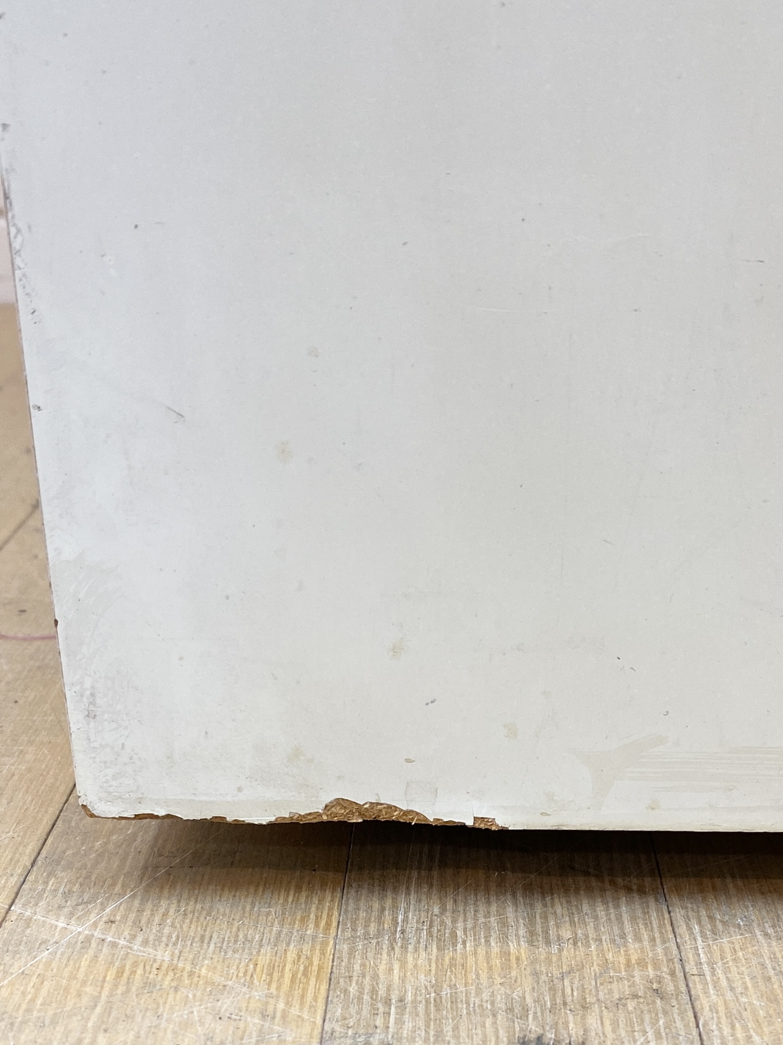 こちらはinterluebke インターリュプケの6段チェストです。 中古品です。 【interluebke インターリュプケ】 1937年創業のドイツの家具メーカーです。 合理的で機能性の高いシンプルなデザインを追求したバウハウス思想のコンセプトを打ち出し 世界で初めてシステム収納家具を開発したことで知られています。インターリュプケの製品は、 数々の賞を受賞するなどシステム収納の先駆者としてドイツで確固たる地位を確立しています。 ドイツの高級家具メーカー、interluebke インターリュプケより6段チェストのご紹介です。 メーカーシールに「Made in Germany / West」とあり、ベルリンの壁崩壊前の旧西ドイツ時代に作られた ビンテージのお品と推測されます。バウハウスの潮流を感じさせるシンプルで機能的なデザインが目を惹く一品です。 使い勝手の良いサイズなので、リビングや書斎など置き場所を選びません。 経年により少し黄味がかったお色味に変化していますが、時を経て培われた独特な佇まいが魅力的です。 【コンディションについて】 古いもののため経年によるキズや変色、塗装剥がれなど全体に使用感があります。 引出しの開閉はスムーズで実用的です。ビンテージ家具ならではの豊かな風合が魅力の家具で、 長くご愛用いただけるお品となっています。 他詳細については下記画像も併せてご参照ください。 ![]() ![]() ![]() ![]() ![]() この機会に是非ご検討ください。皆様のご入札お待ちしております。 再良市場の他のお品物はこちらから!
