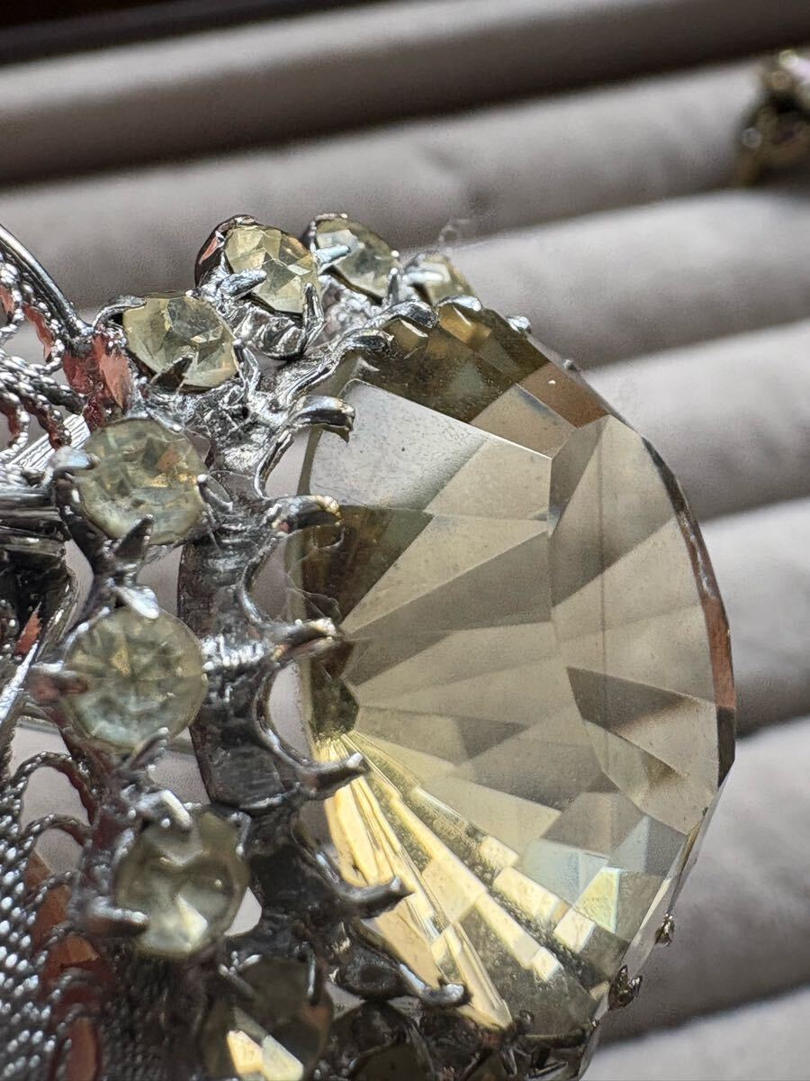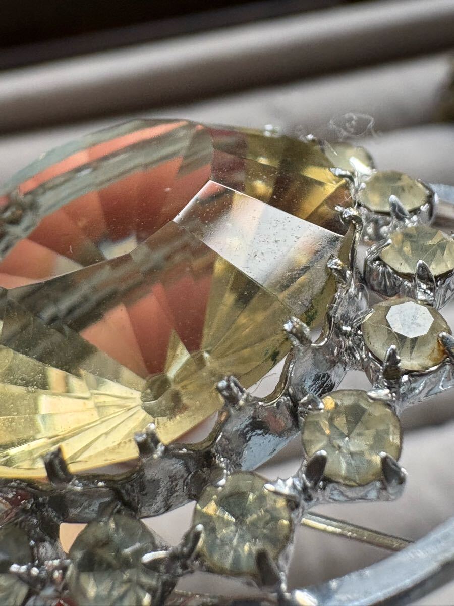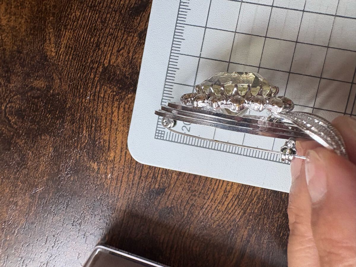 石の種類は分かりません。針の留め具があたる辺りに少し禿げがあります。