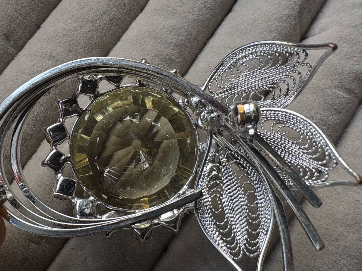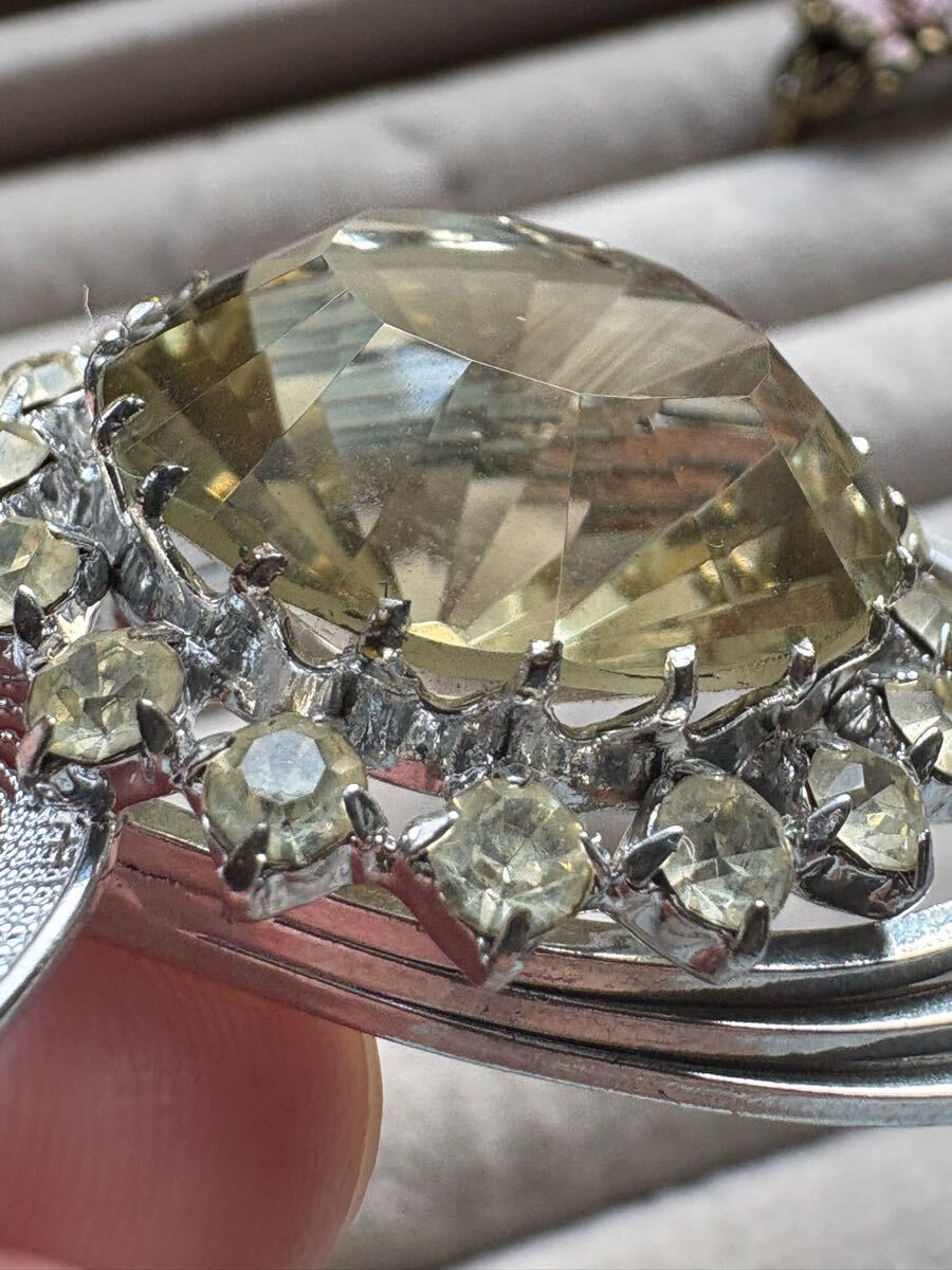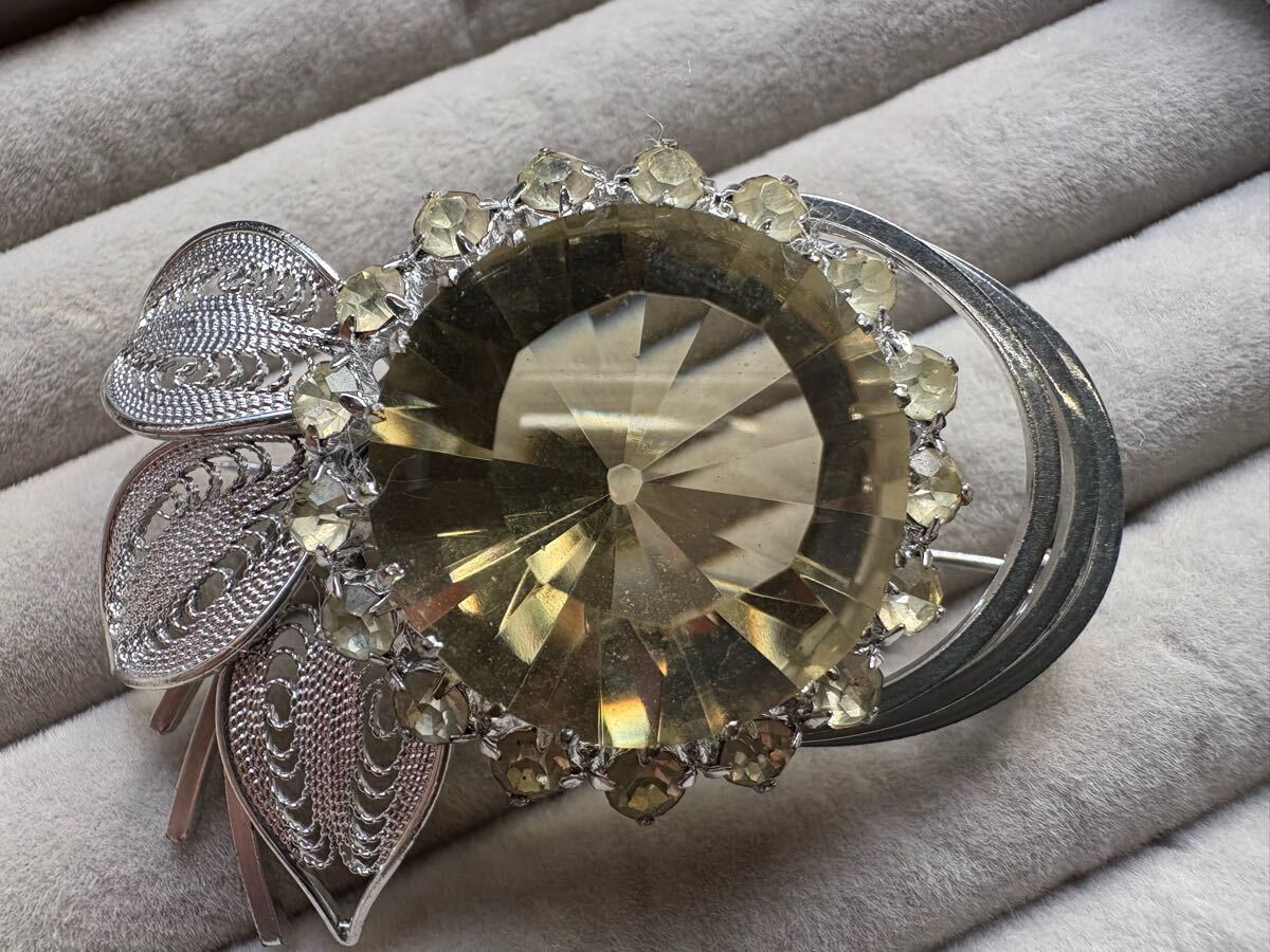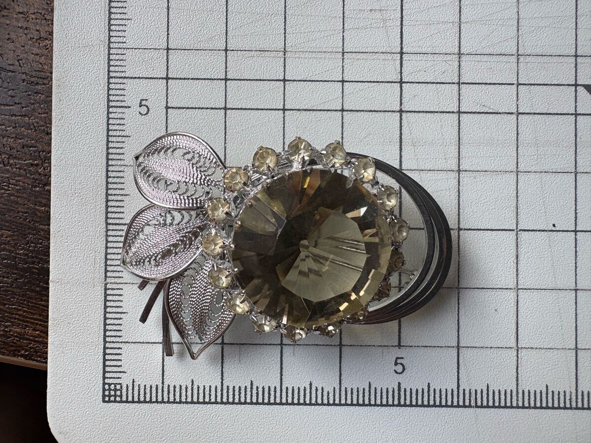 石の種類は分かりません。針の留め具があたる辺りに少し禿げがあります。