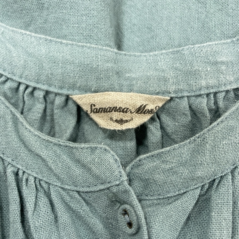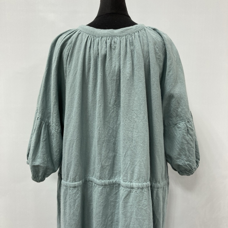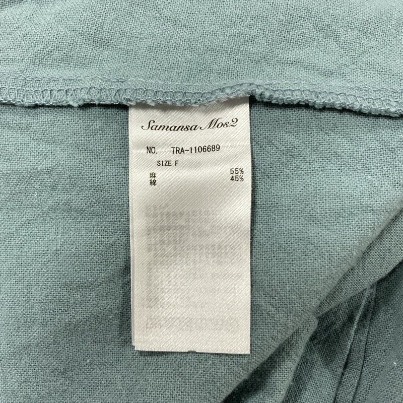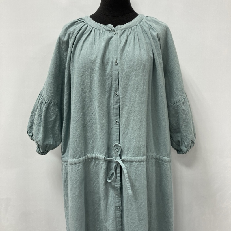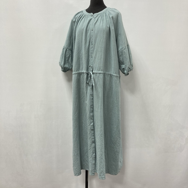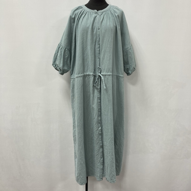 ●Samansa Mos2/サマンサモスモス/SM2/コットンリネンパフスリーブ前開きワンピース /シャツワンピース/ロ羽織もの/ミント系/サイズF