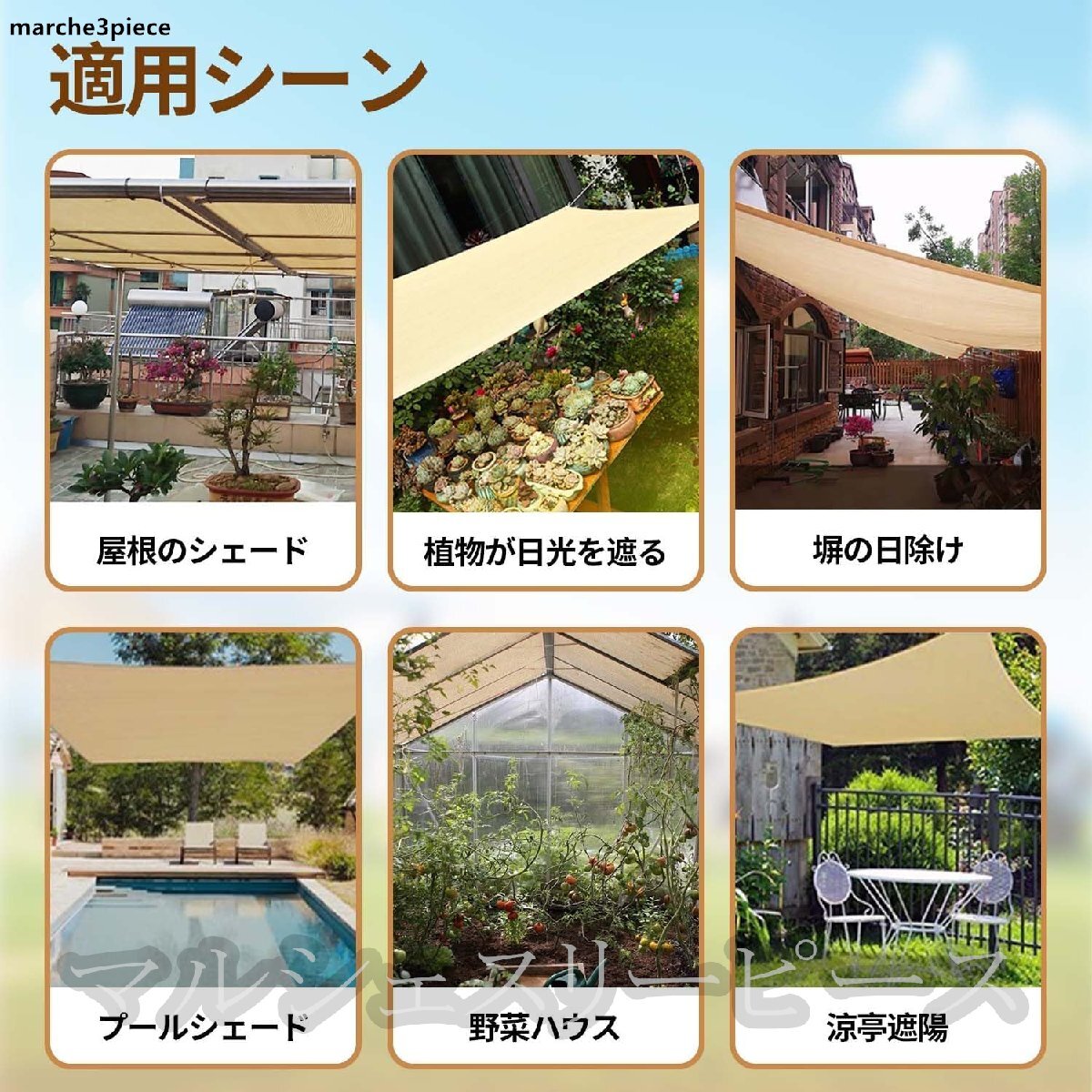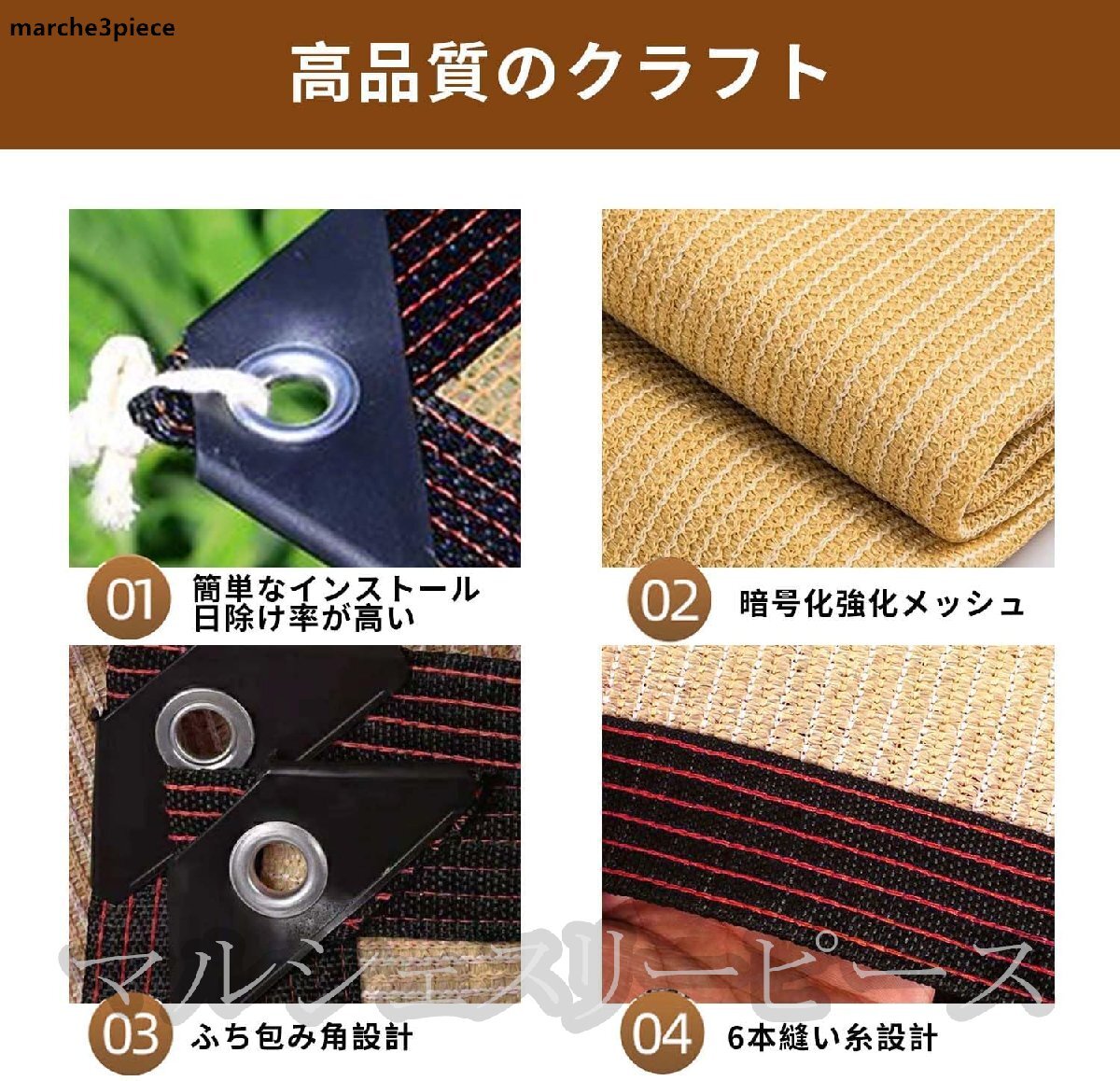 【高密度ポリエチレン製】日除けシェードは、厚みを増した高密度ポリエチレンを使用しています。耐久性が高く、破れにくいです。専用の広いエッジと6本の線の端を強化した設計で、風による引き裂きを防ぎます。サンシェードネットの四隅には三角形の保護コーナーがあり、両側には1mごとにグロメットが配置されています。これらの特徴により、吊り下げが簡単であり、風に対する強い抵抗性を持っています。