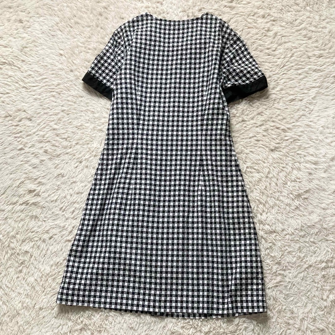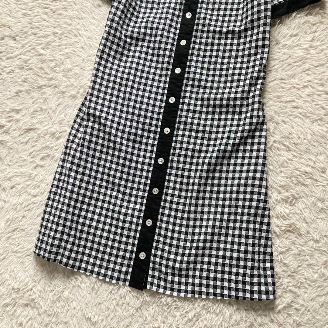 FRED PERRY フレッドペリー シャツワンピース ひざ丈 ノーカラー 半袖 フロントボタン チェック柄 ロゴ刺繍 ローレル 月桂樹