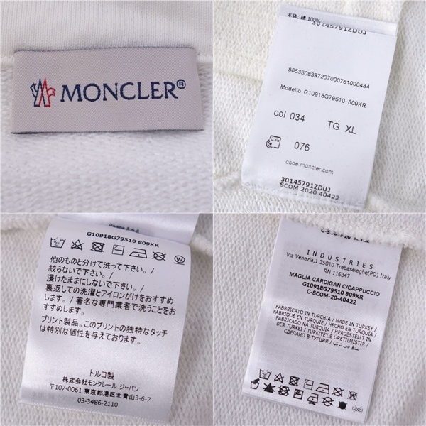 | 美品 モンクレール MONCLER パーカー 2020 フーディ スウェット ジップアップ コットン トップス メンズ XL ホワイト |