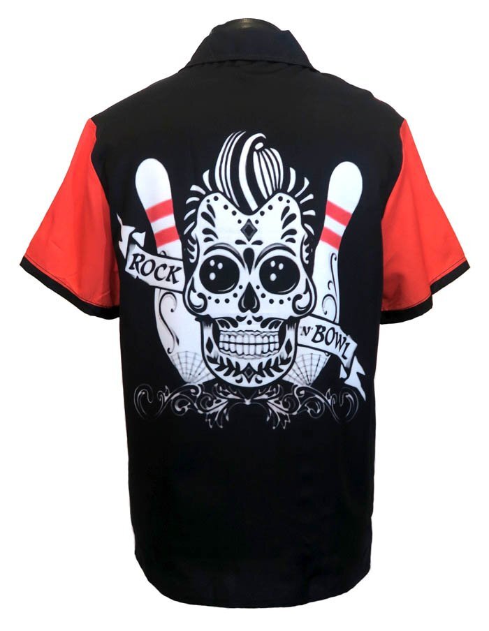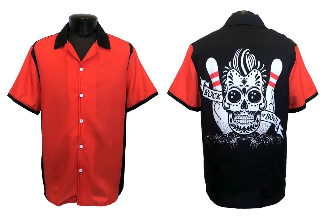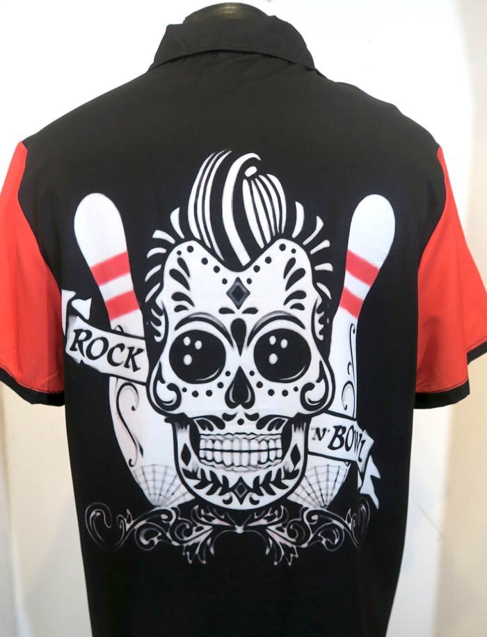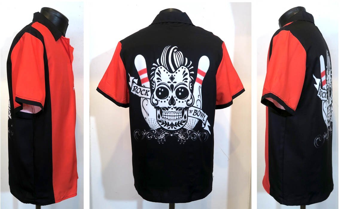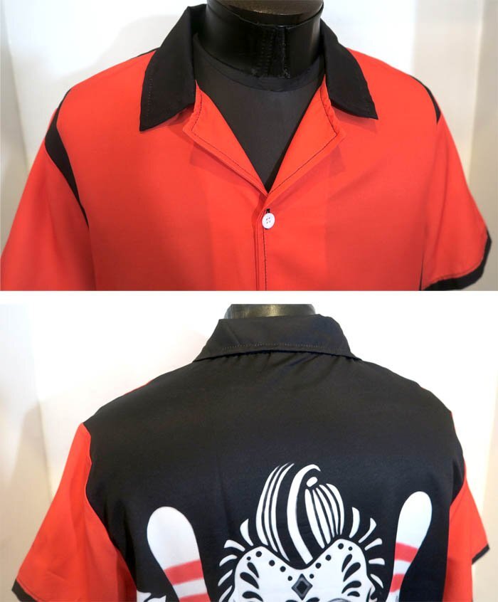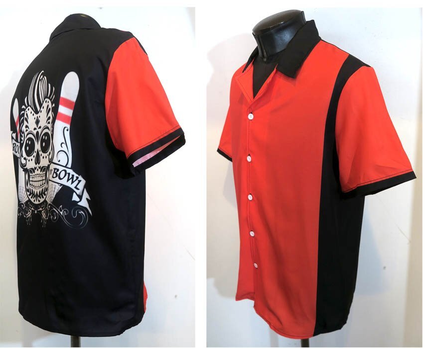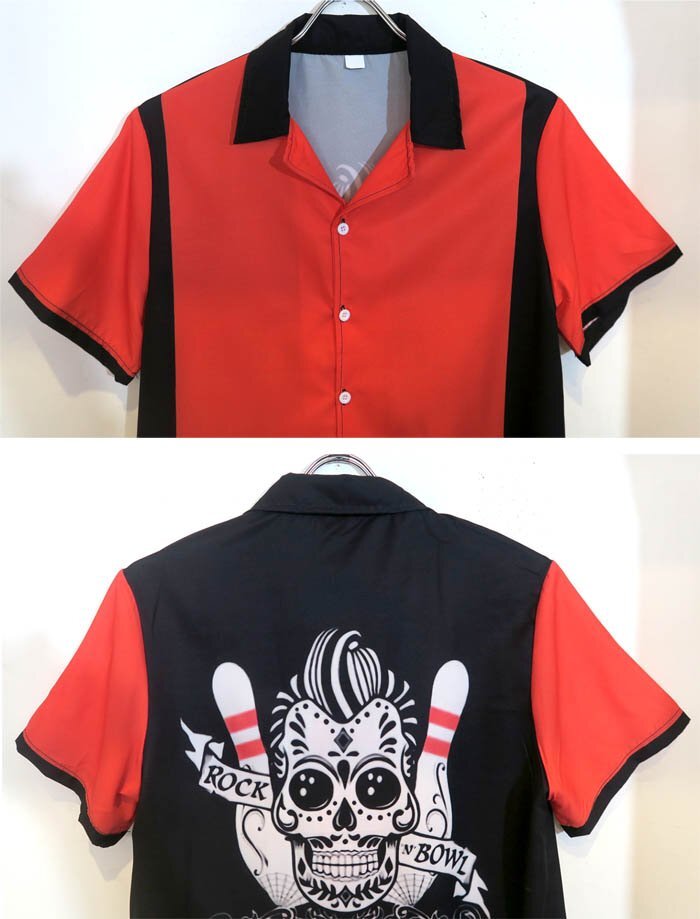 新品 3XLサイズ ボーリングシャツ リーゼント 骸骨 赤 黒 1358 A 大きなサイズ ビッグサイズ レッド ブラック ロカビリー スカル 柄シャツ