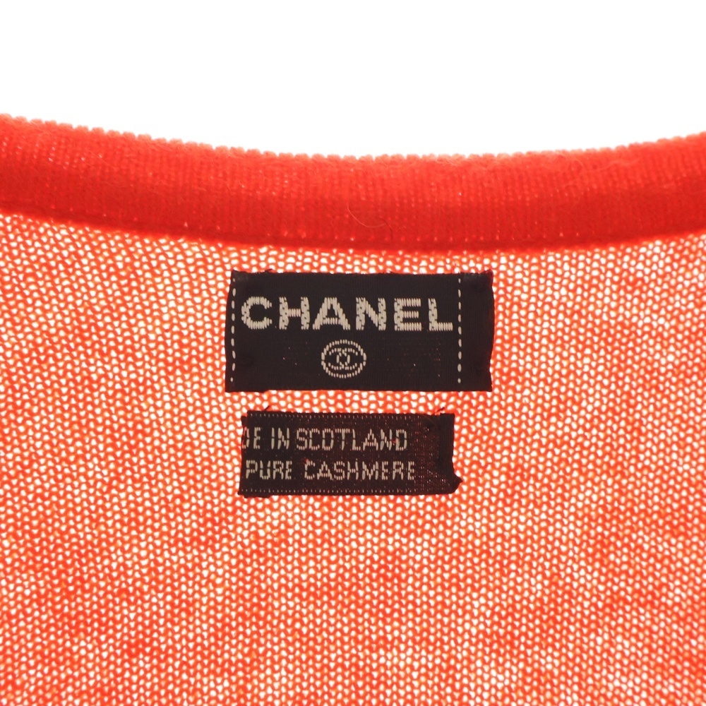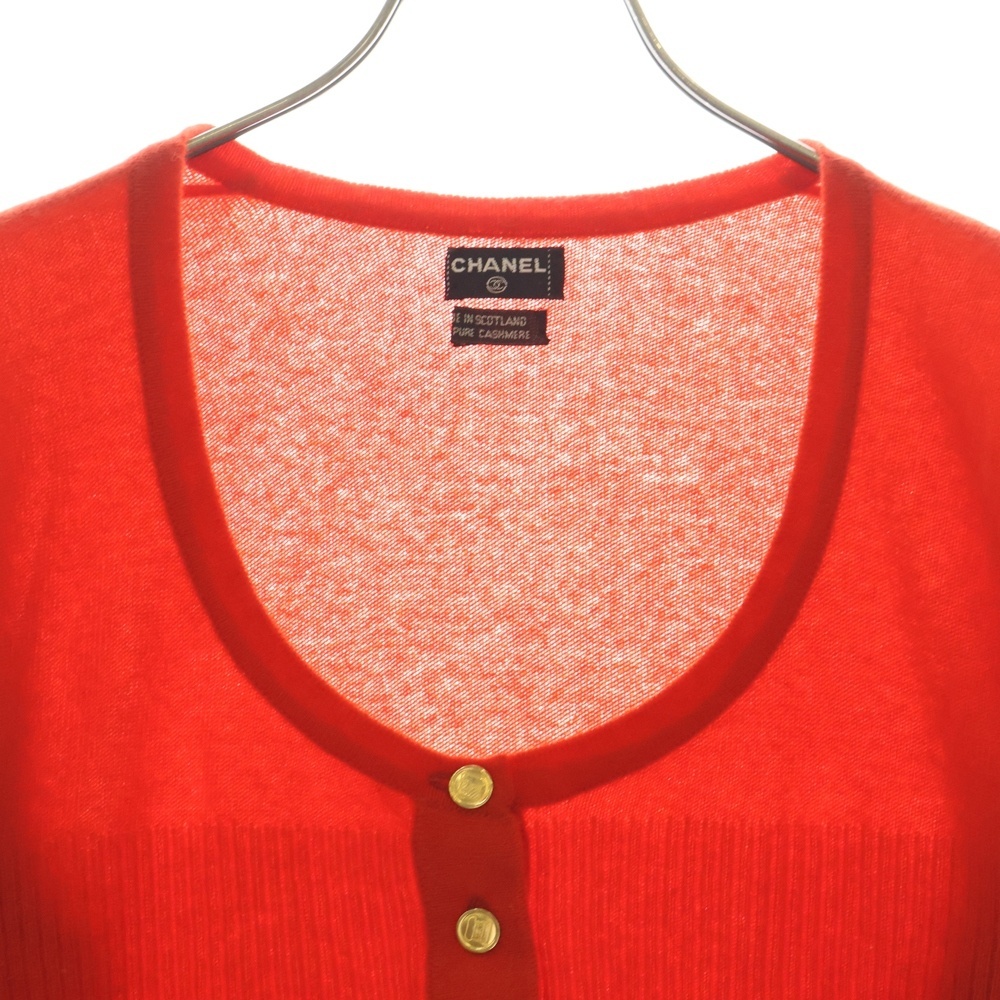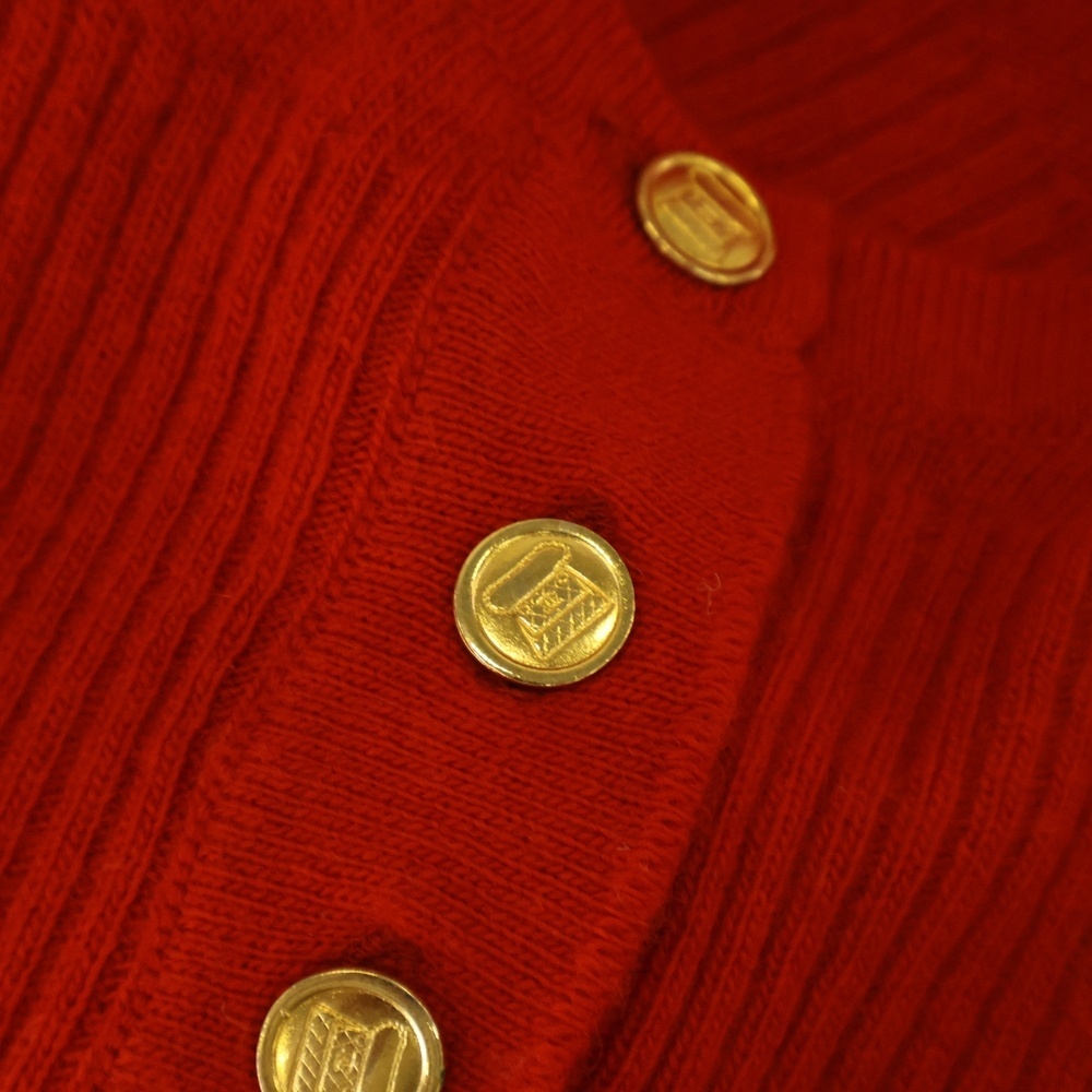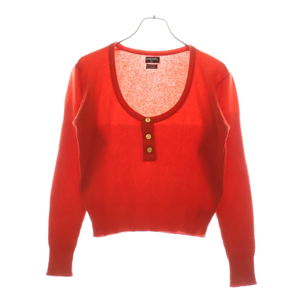 CHANEL シャネル 80S VINTAGE ヴィンテージ ハーフボタン オープンネック カシミヤニットカセーター スコットランド製 レディース レッド